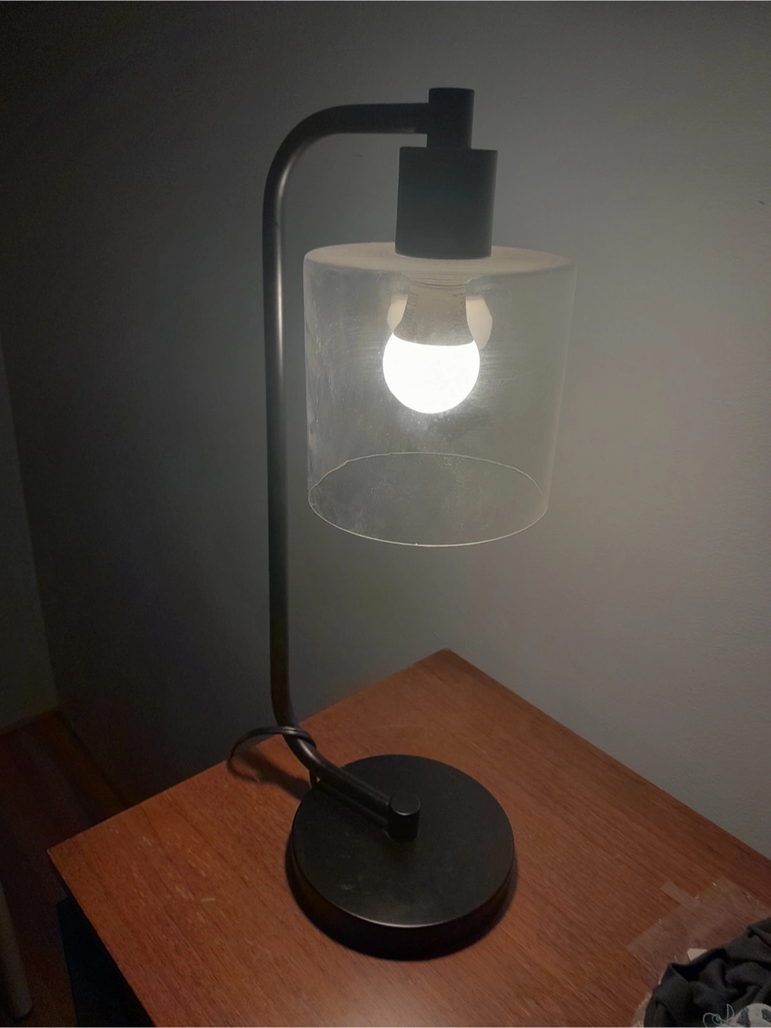 Buy & SellModern Black Desk Lamp with Clear Glass ShadeModern Black Desk Lamp with Clear Glass Shade$10NO BULB INCLUDED. black metal design. Clear glass cylinder shade. Inline on/off switch. Perfect for bedside table or desk.Dimensions9 x 6.3 x 220 chats·0 favorites·8 viewsSELLERRoW End12610 reviewsWHERE TO MEETCheck Location