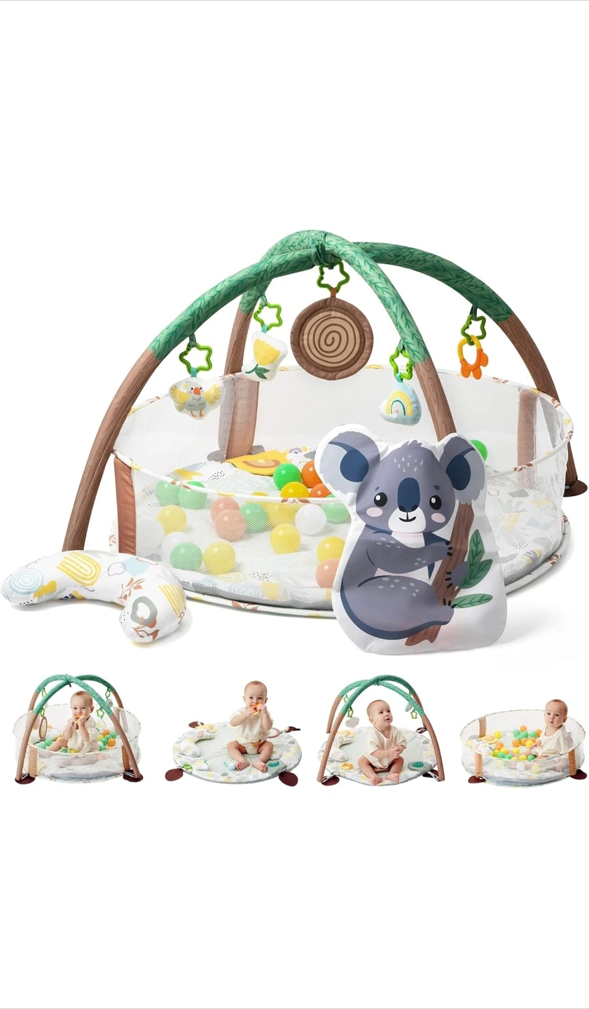 Adorable baby play gym and ball pit. Features a detachable mat, easy setup and cleaning. Promotes motor and cognitive development. Includes various play modes and storage.