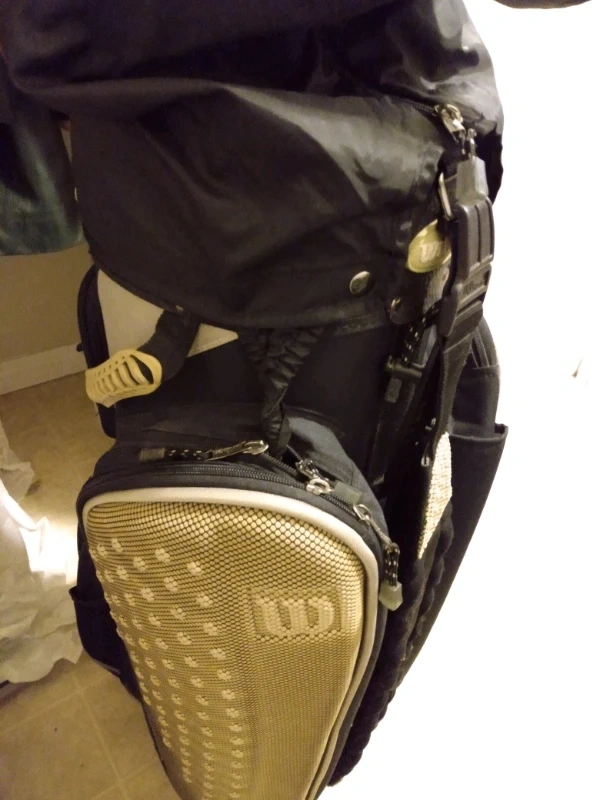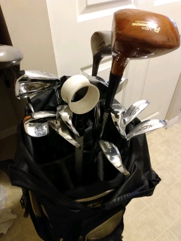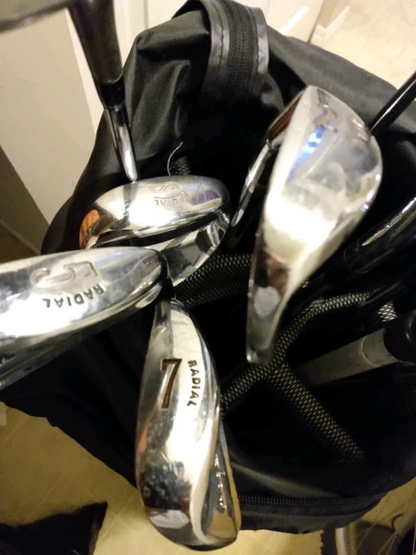 8Complete golf club set. Includes woods, irons, and wedges. All clubs in a Wilson golf bag. Good condition.
