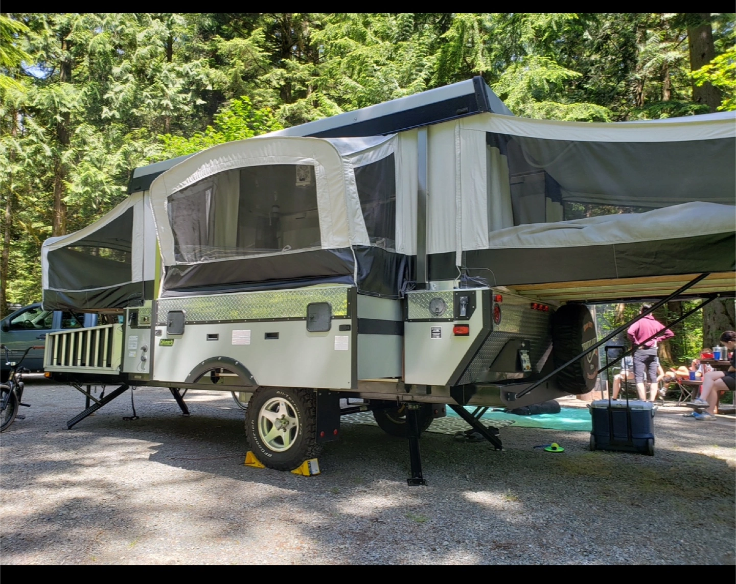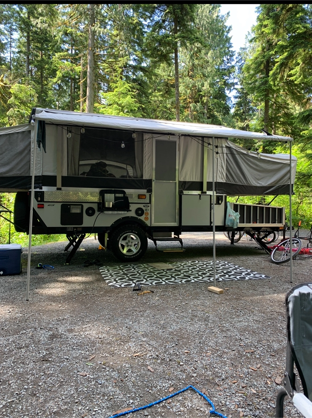 Needs a new battery, propane tanks and a good wash - which we can’t do at the storage place .