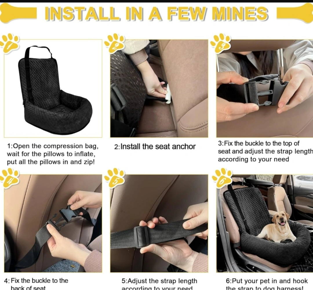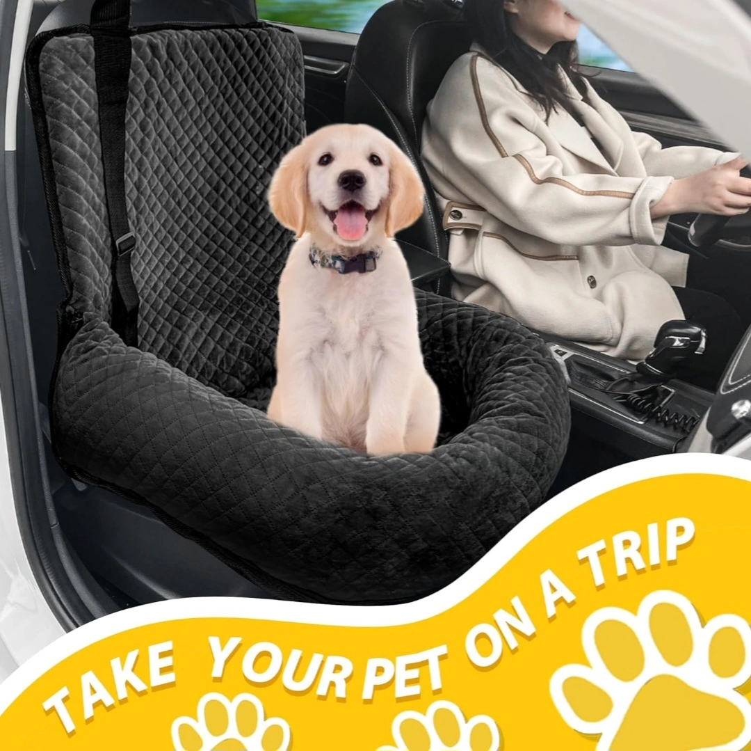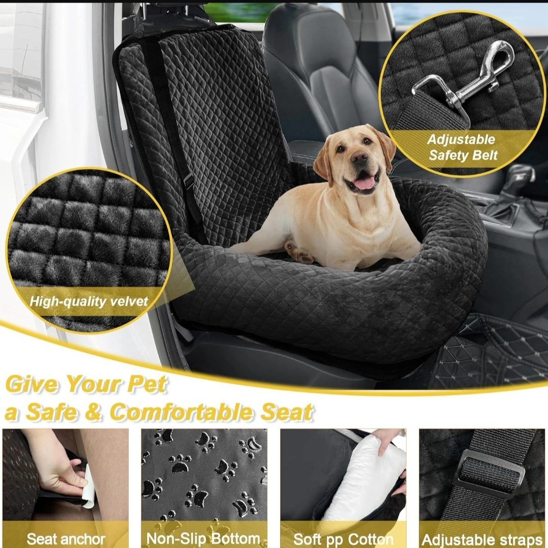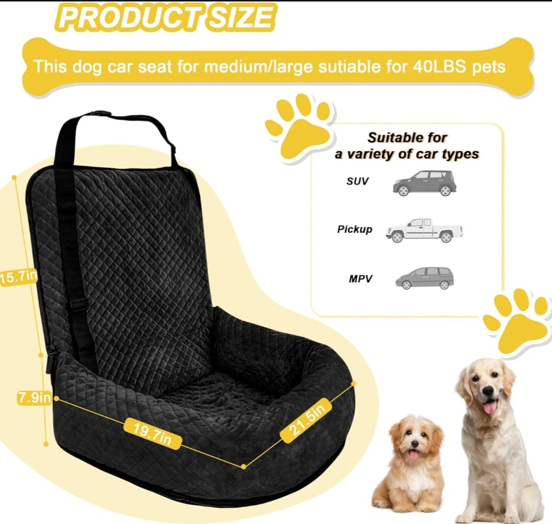 Dog Car Seat for Small Medium Dogs,Detachable Washable Travel Safety Pet Booster Seat, Comfy Ultra Soft and Multifunctional Car Travel Bed,Black