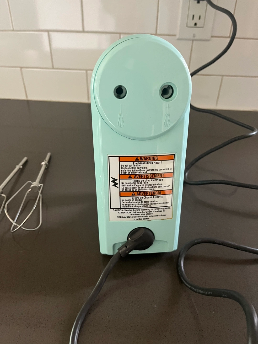 5-speed hand mixer. Mint coloured. Includes beaters. Great condition. Just don’t use it anymore. Pick up in Utopia