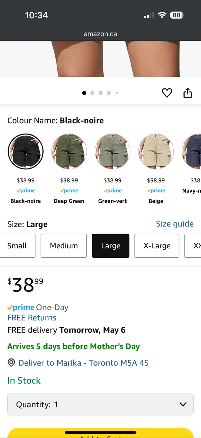 BN Women's Black Cargo Shorts, Lg