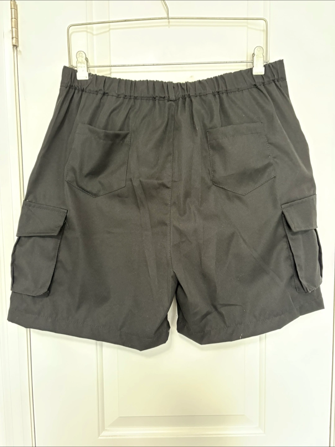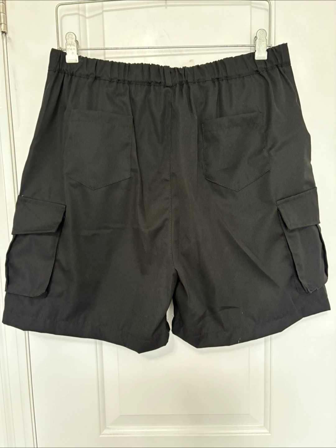 BNWT Black cargo shorts size large. Elastic waistband at the back. Multiple pockets. (6) Brand new condition. 7โ inseam. Retailed for $39 before tax.