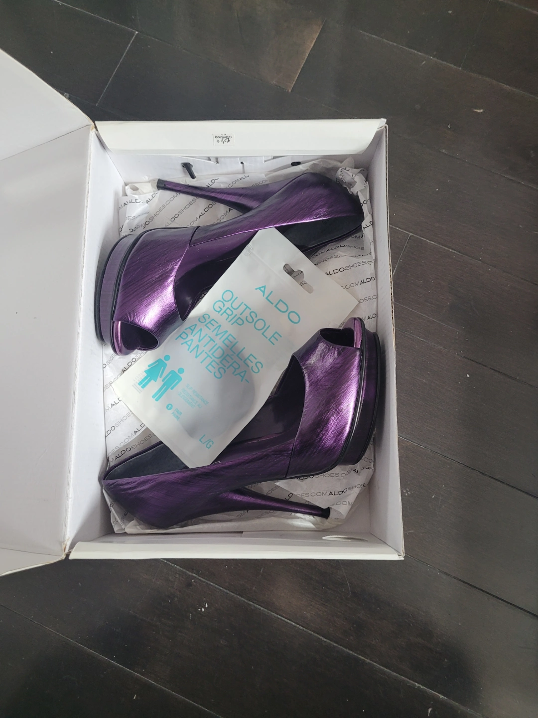 Buy & SellAldo Purple Peep Toe Heels Size 35Aldo Purple Peep Toe Heels Size 35$30Gorgeous purple peep-toe heels. High heels. Comes in original Aldo box. Size 35. Includes extra heel protectors.ConditionNewSize5WHERE TO MEETCheck LocationView MapSELLERverifiedNeliErin Mills1155 reviews1 chats·0 favorites·33 views