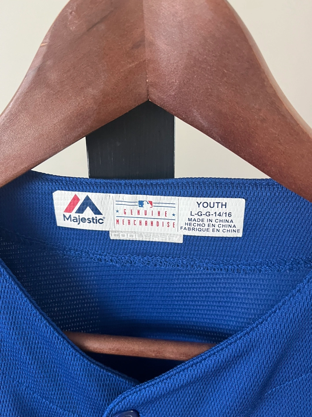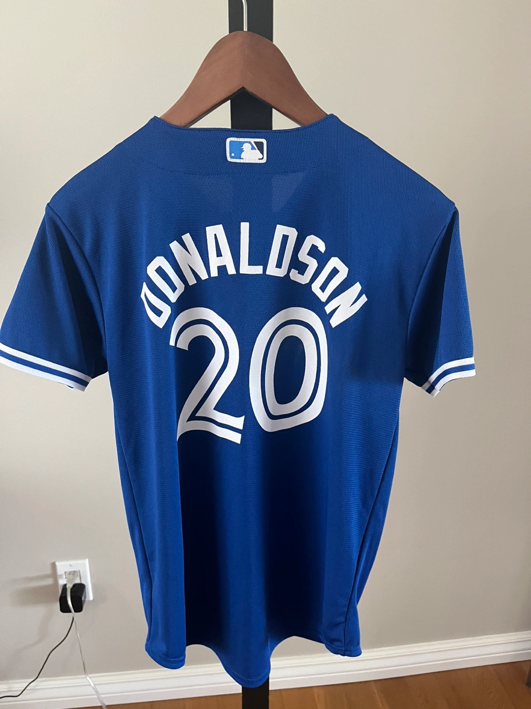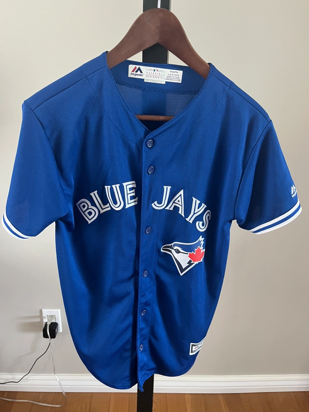 Toronto Blue Jays jersey. Size Youth Large. (14/16). Features Donaldson's name and number on the back. Button-up. Pick up in Utopia