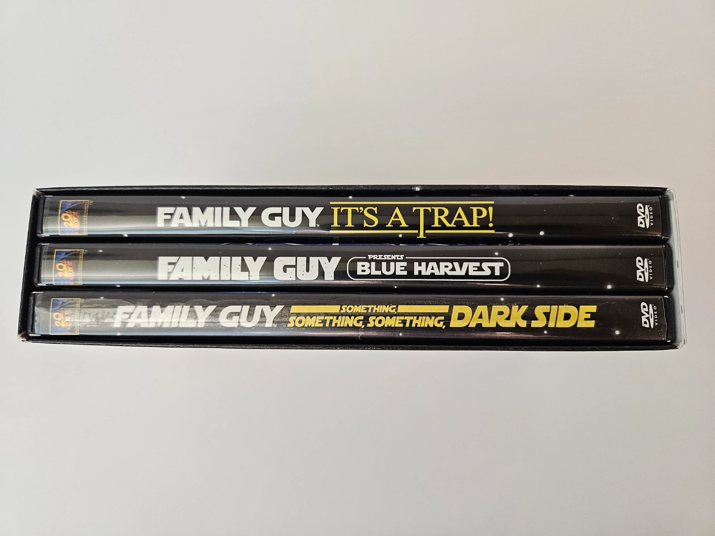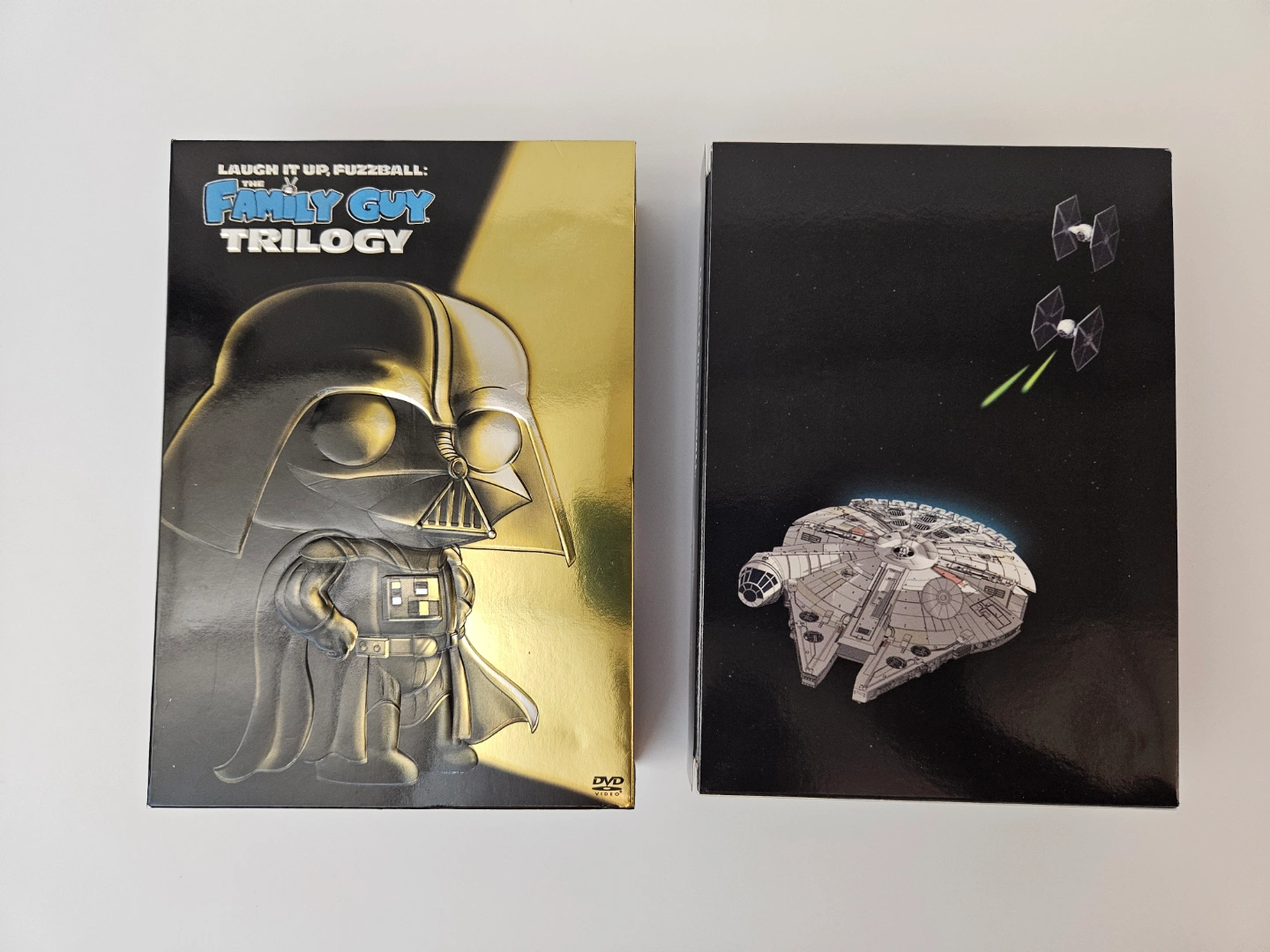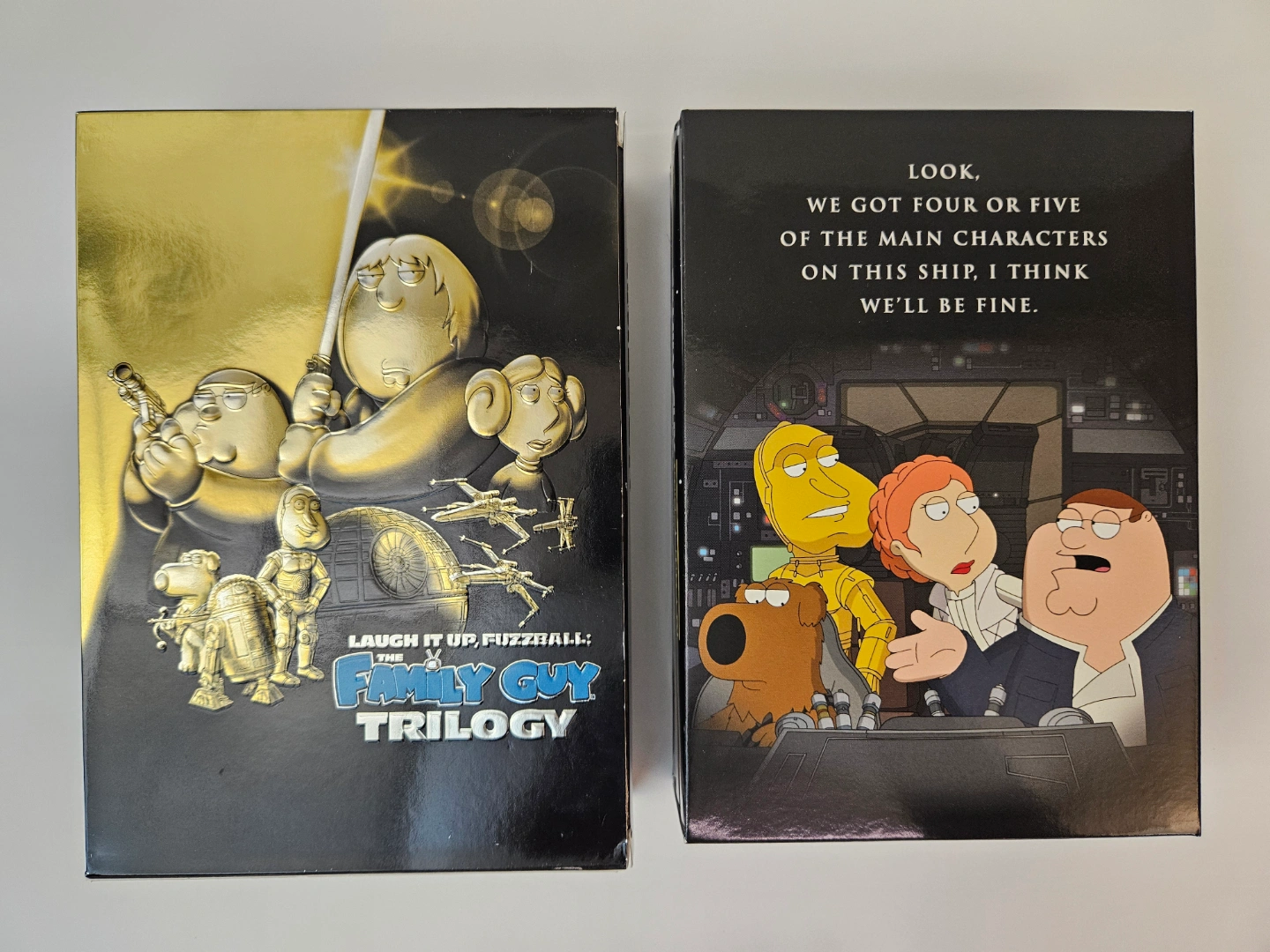 I have for sale Star Wars Family Guy trilogy - Laugh it up fuzzball in great condition. It includes Family guy blue harvest, Family guy something, something, something Darkside & Family guy it's a trap, I am asking $10. If you are interested please contact me.....thanks