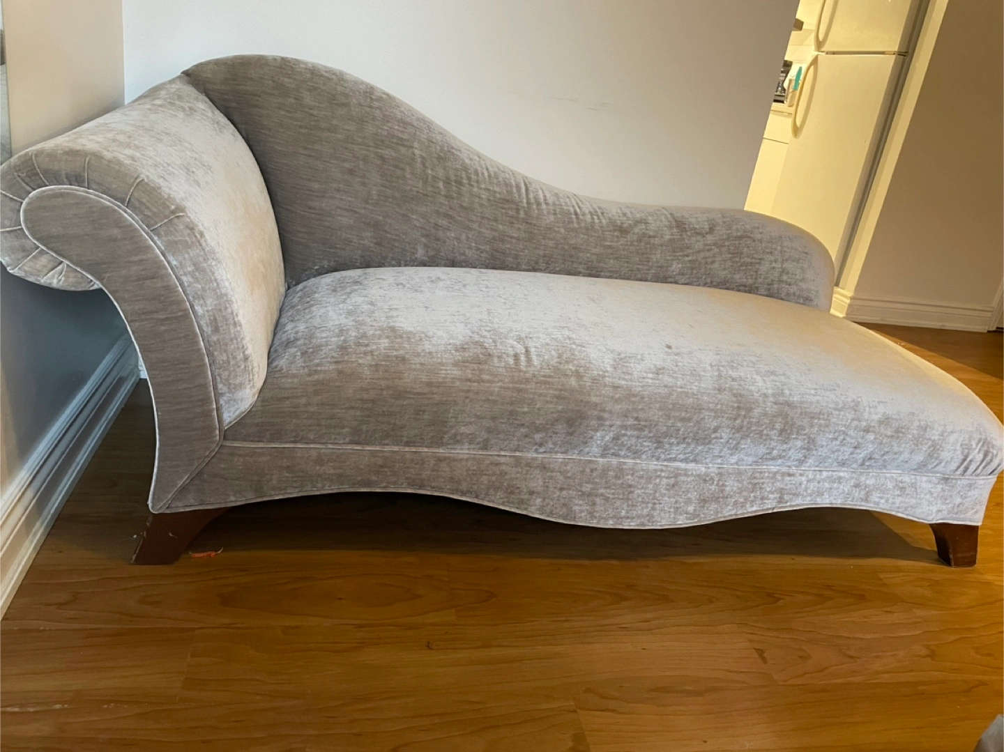 Buy & SellElegant Grey ChaiseElegant Grey Chaise$180Curved chaise lounge. Grey velvet upholstery. Wooden legs. Comfortable and stylish addition to any home.ConditionLike newDimensions70”x32”WHERE TO MEET75 Dingwall AveView MapSELLERverifiedPauloEntertainment District741 review1 chats·1 favorites·69 views