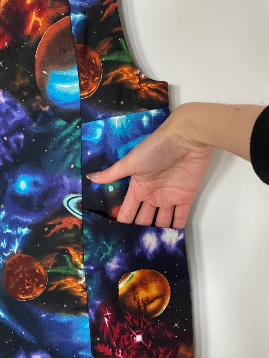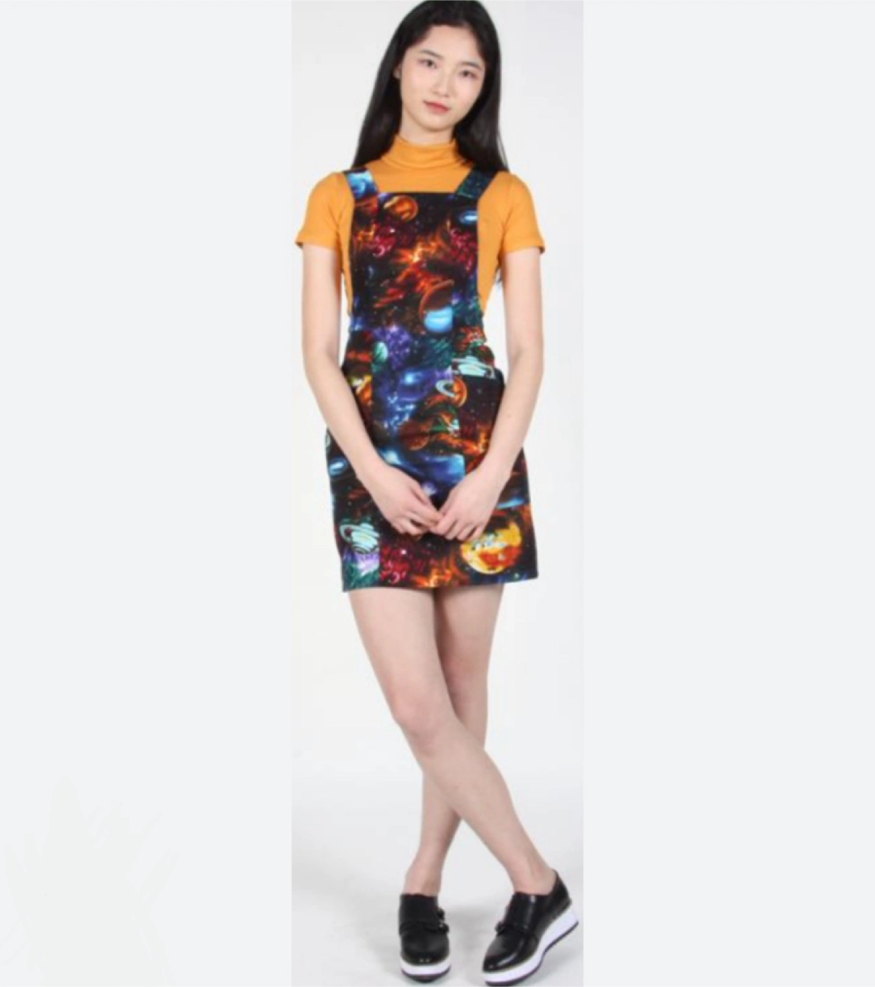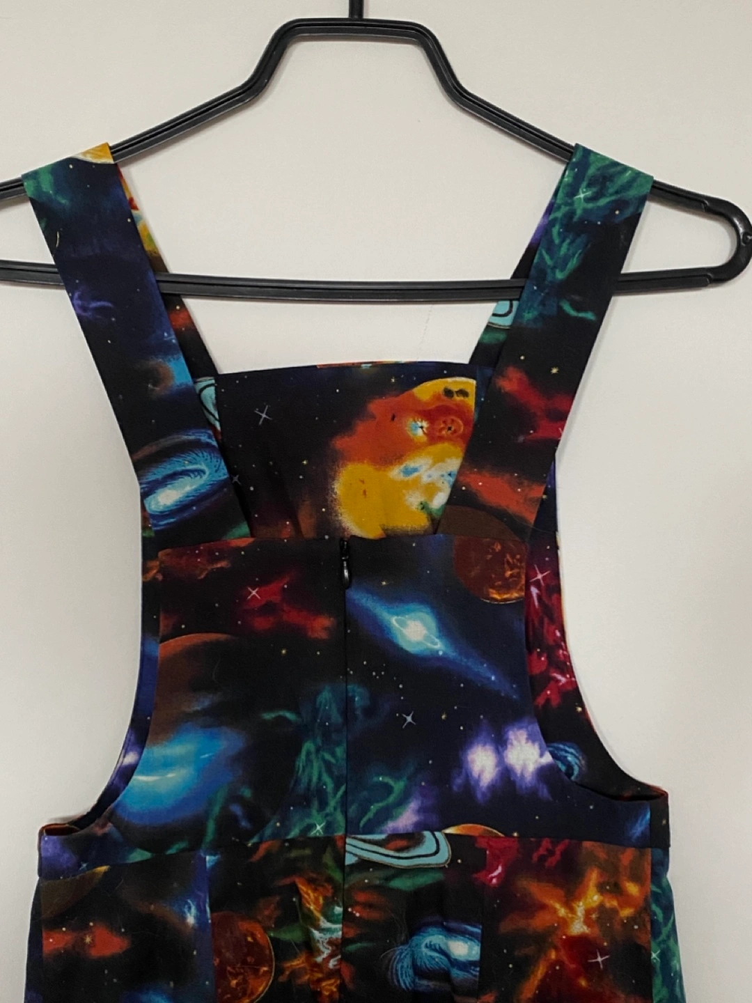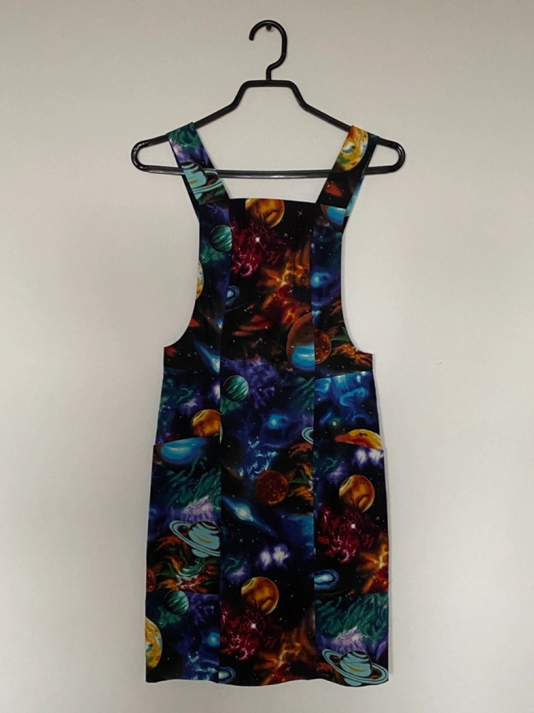 Galaxy/intergalactic overall dress/tunic/pinafore by Birds of North America. Made in Canada, by an ethical and vegan brand. Original price was $137.
