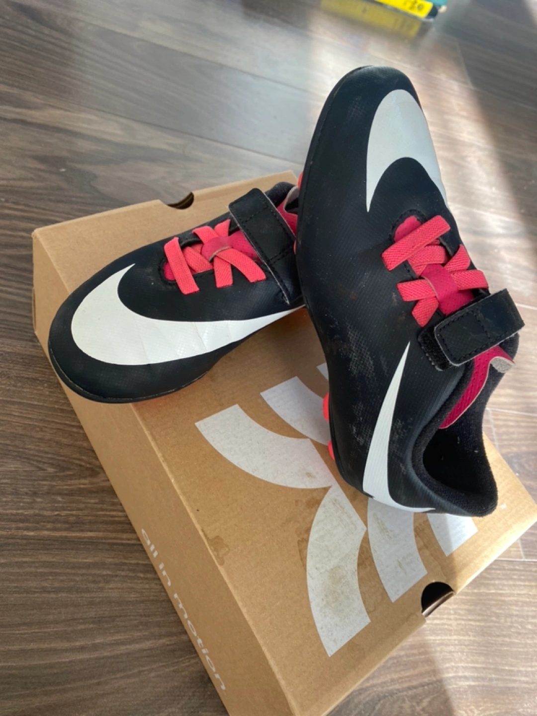 Nike Jr. football cleats. Velcro strap closure. Size US 13C. Made in Vietnam. $15. Pick up in the legacy area.