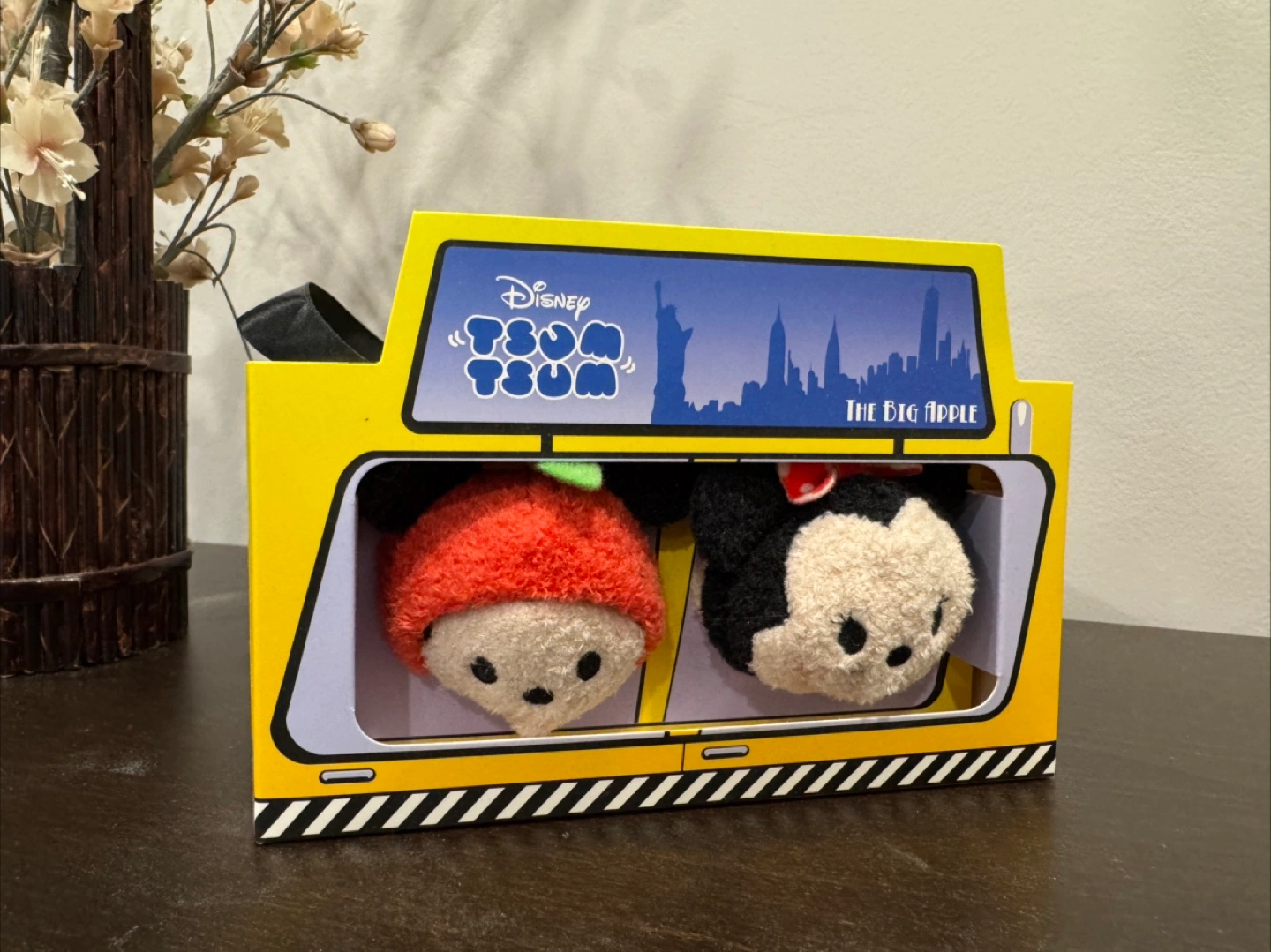 117Mickey and Minnie Mouse Tsum Tsum plush in a collectible yellow taxi box. Features New York City skyline. Perfect gift or addition to your collection. Comes with black ribbon handle.