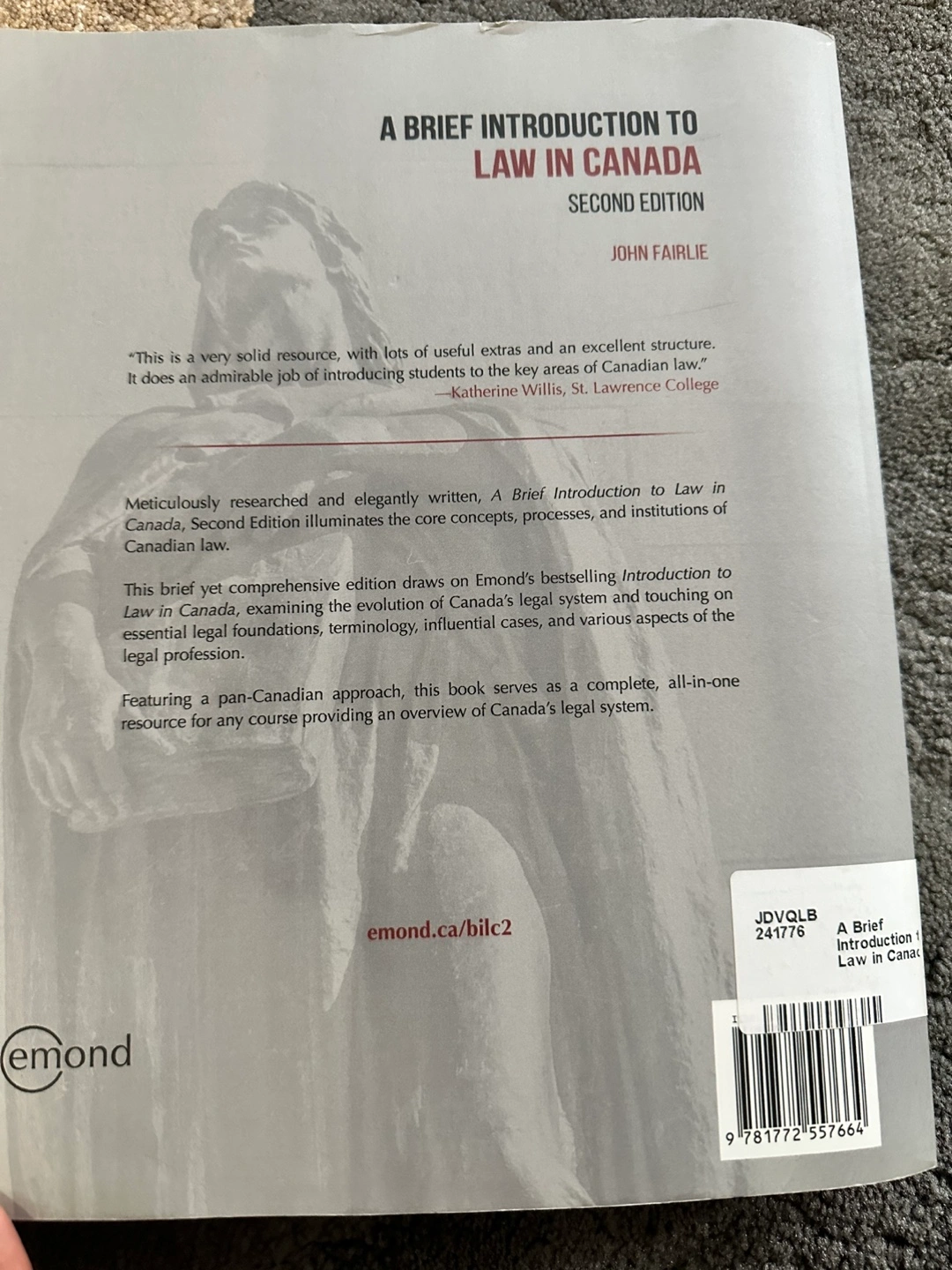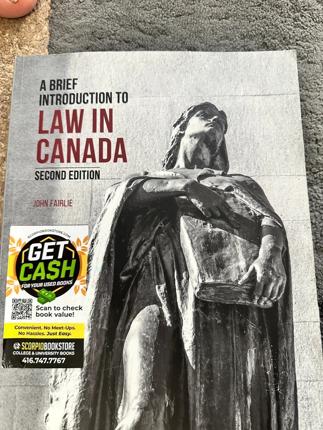 363*A Brief Introduction to Law in Canada*, second edition, by John Fairlie. $70