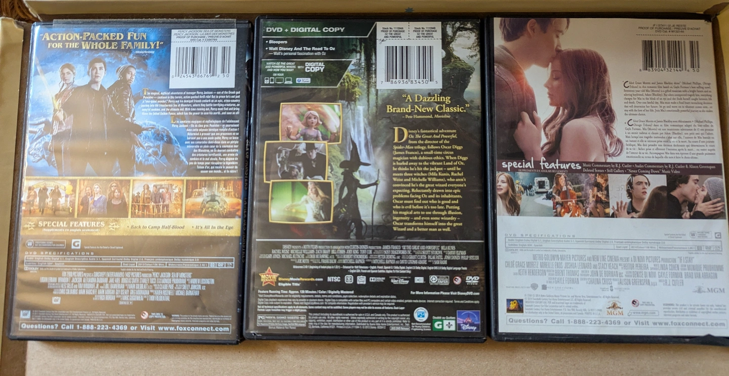 Includes three DVDs. Percy Jackson: Sea of Monsters. Oz the Great and Powerful. If I Stay. Pre-owned, good condition - $5 each - $12 all three