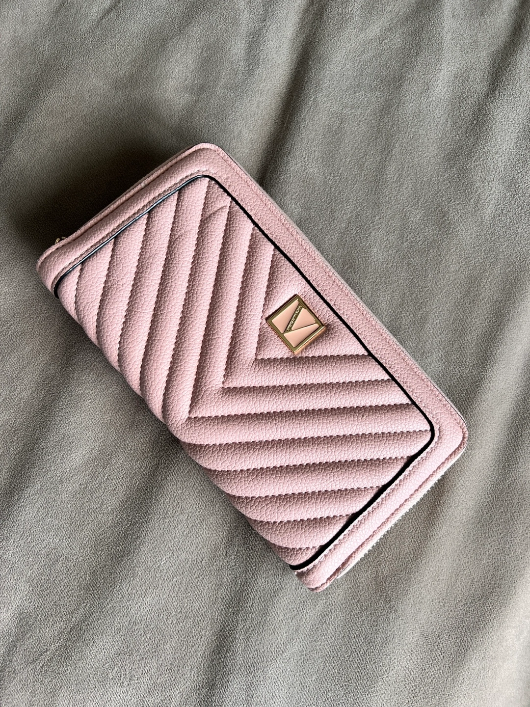 Victoria’s Secret Women's blush pink wallet. Features a quilted chevron design and gold zipper. Multiple card slots and compartments. Great for everyday use.