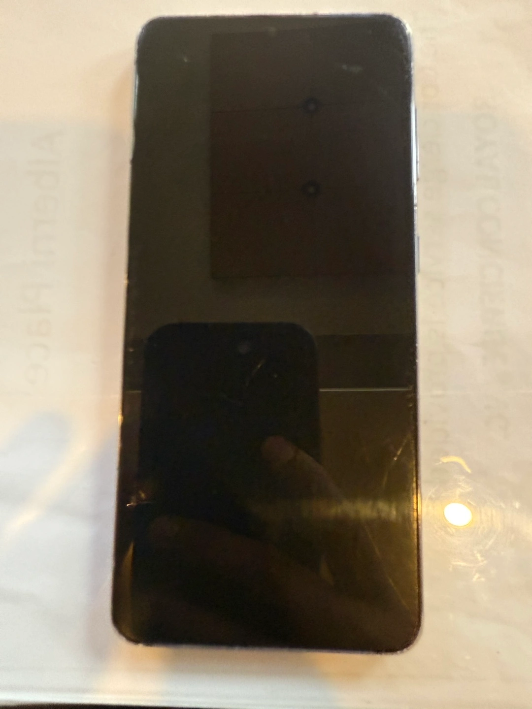 Samsung Galaxy S21 5G smartphone. 128 GB storage. Scratch on screen and side edge no cracks or damage. Great working condition no issues . Includes a charger
