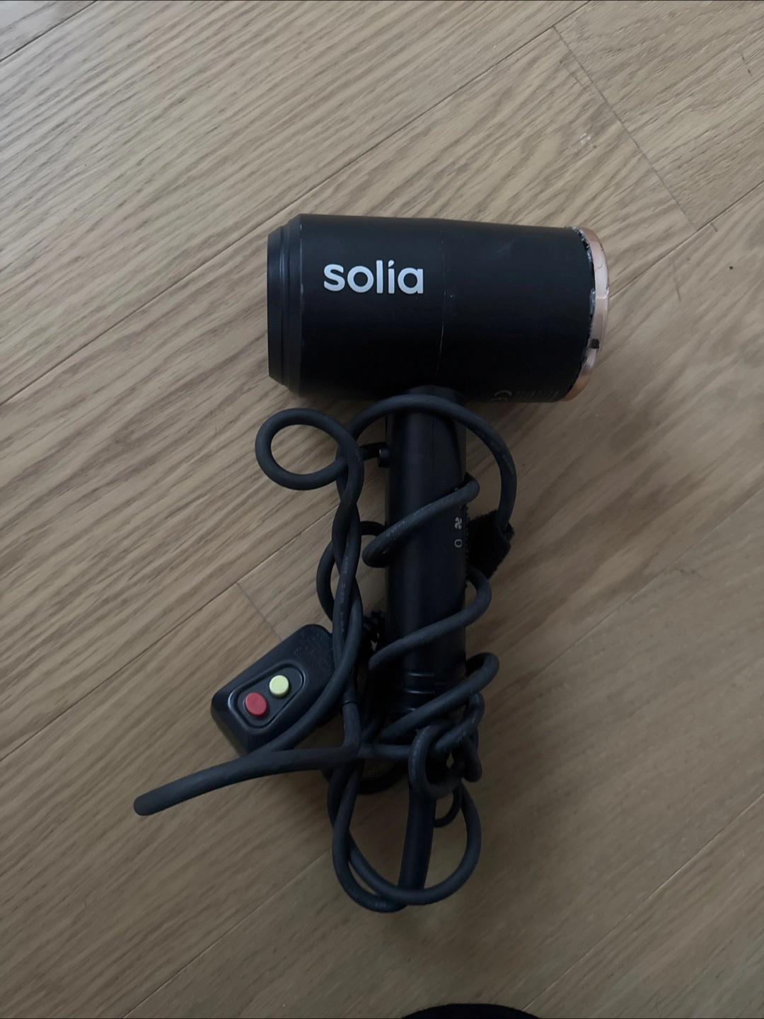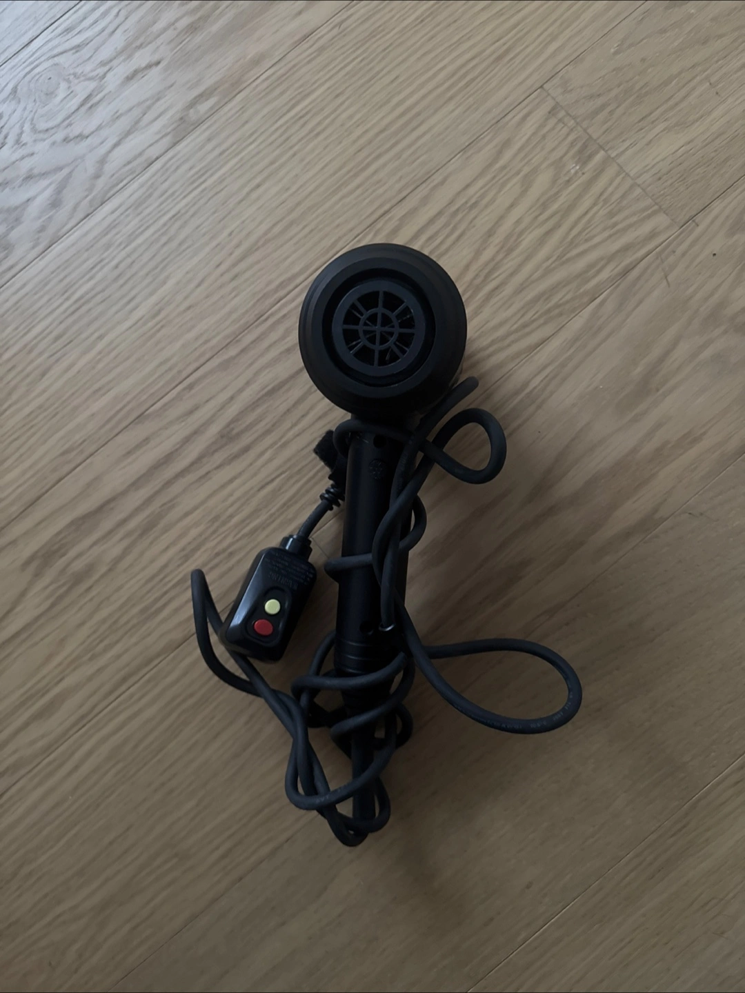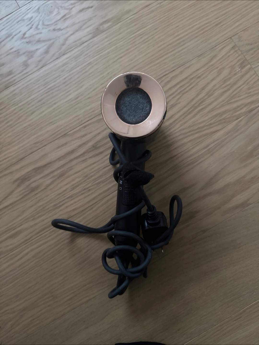 134Black and rose gold hair dryer. Compact design. Includes power cord and control switch.