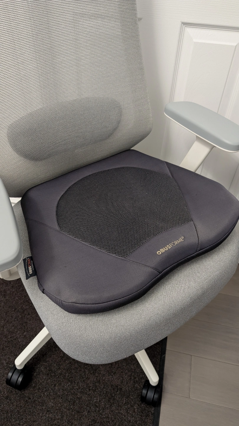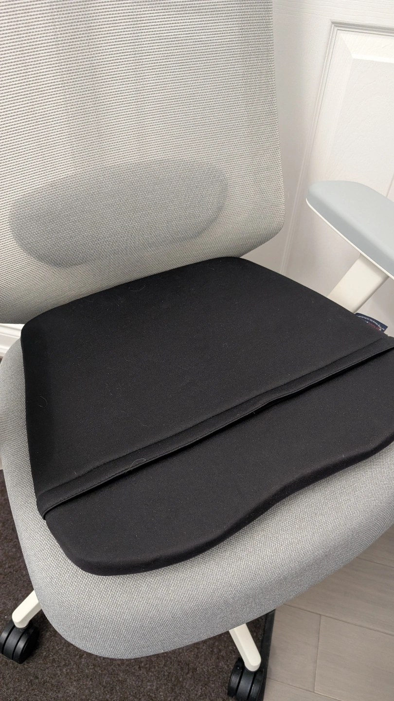 Comfortable seat cushion. Provides support and cushioning. Great for office chairs. Reduces pressure on tailbone.