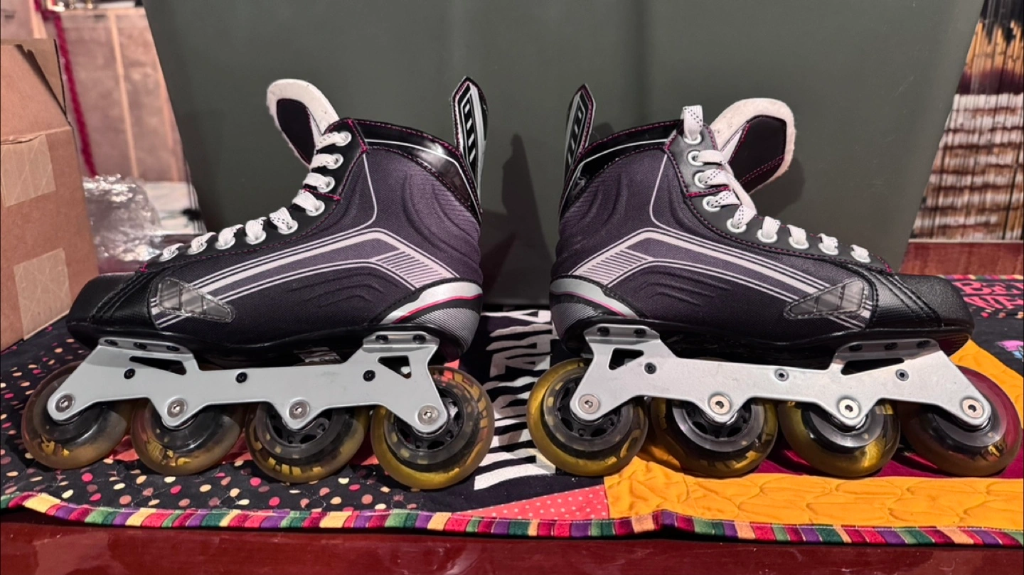 Pair of Bauer Hilo Roller hockey skates. Black with grey accents. Like new condition. Bauer 300R. 4R. Shoe size US 5.