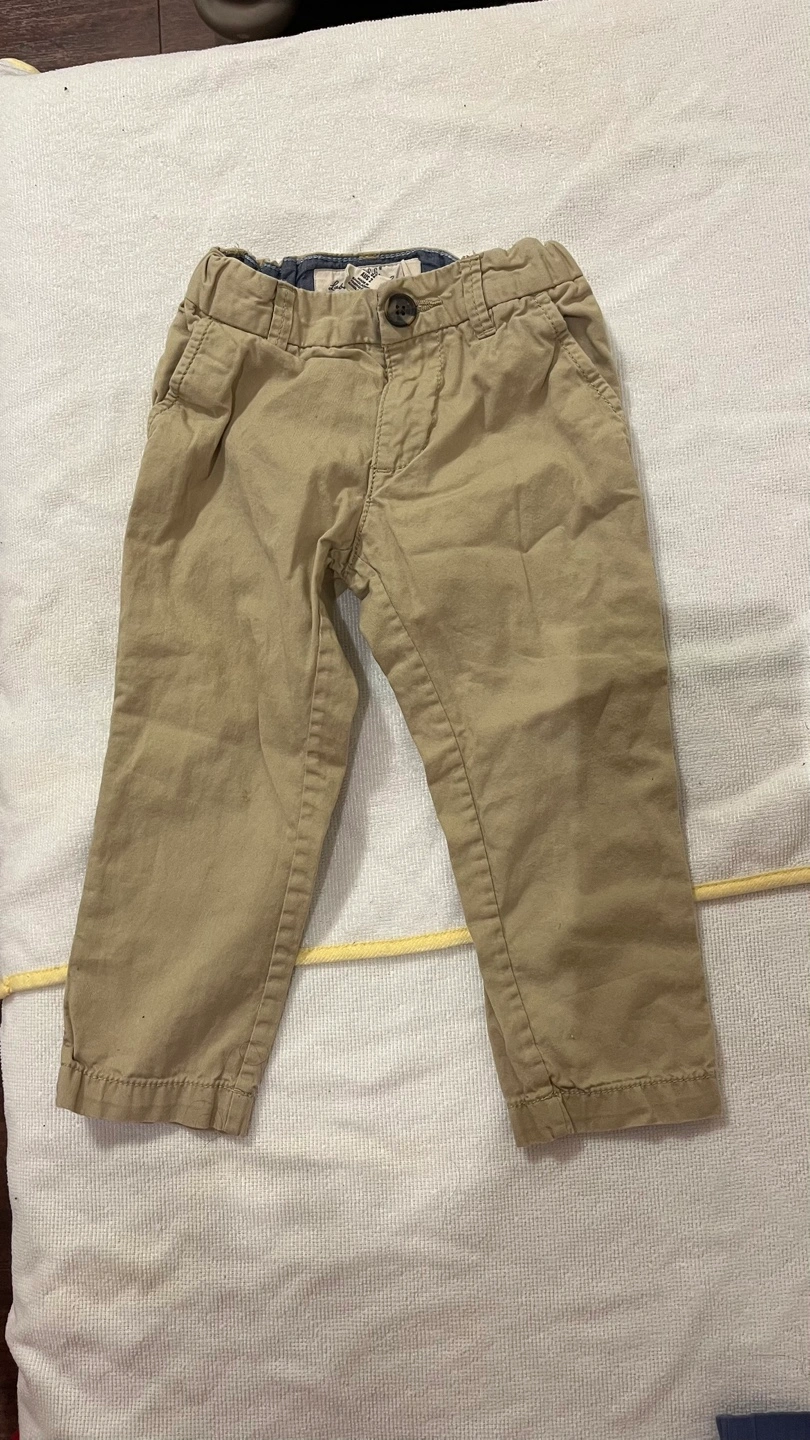 Toddler khaki pants. Size not specified. Good used condition. Button and zipper closure. Two front pockets.