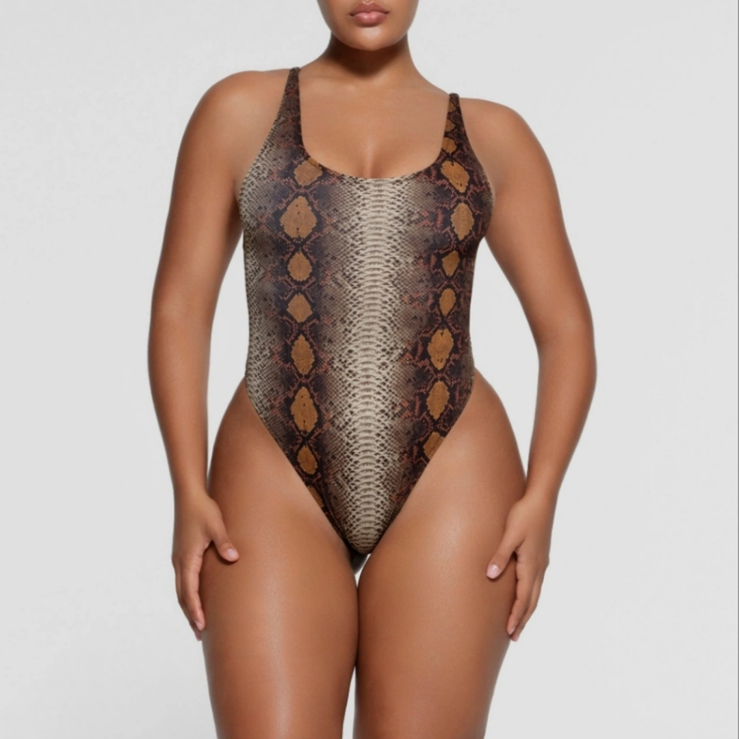 SKIMS Desert Snakeskin Print One Piece Swimsuit.
