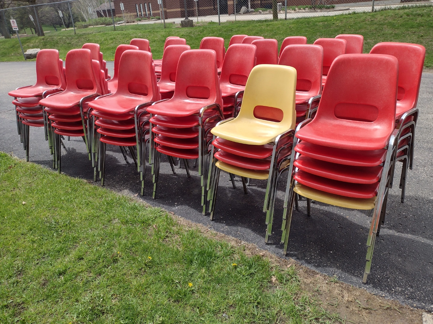 18" Red Adult Plastic Stacking Chairs With Chrome Legs - 91 Av