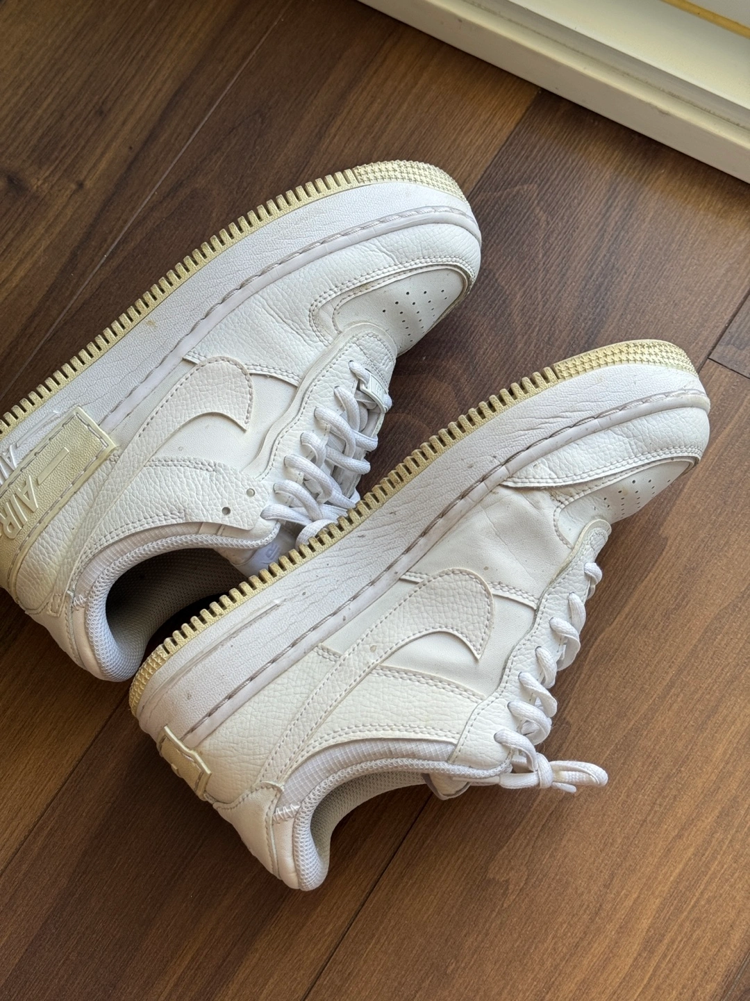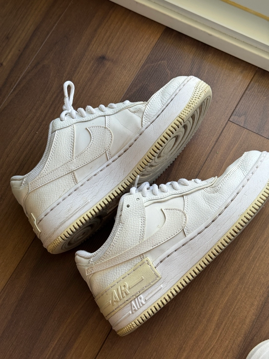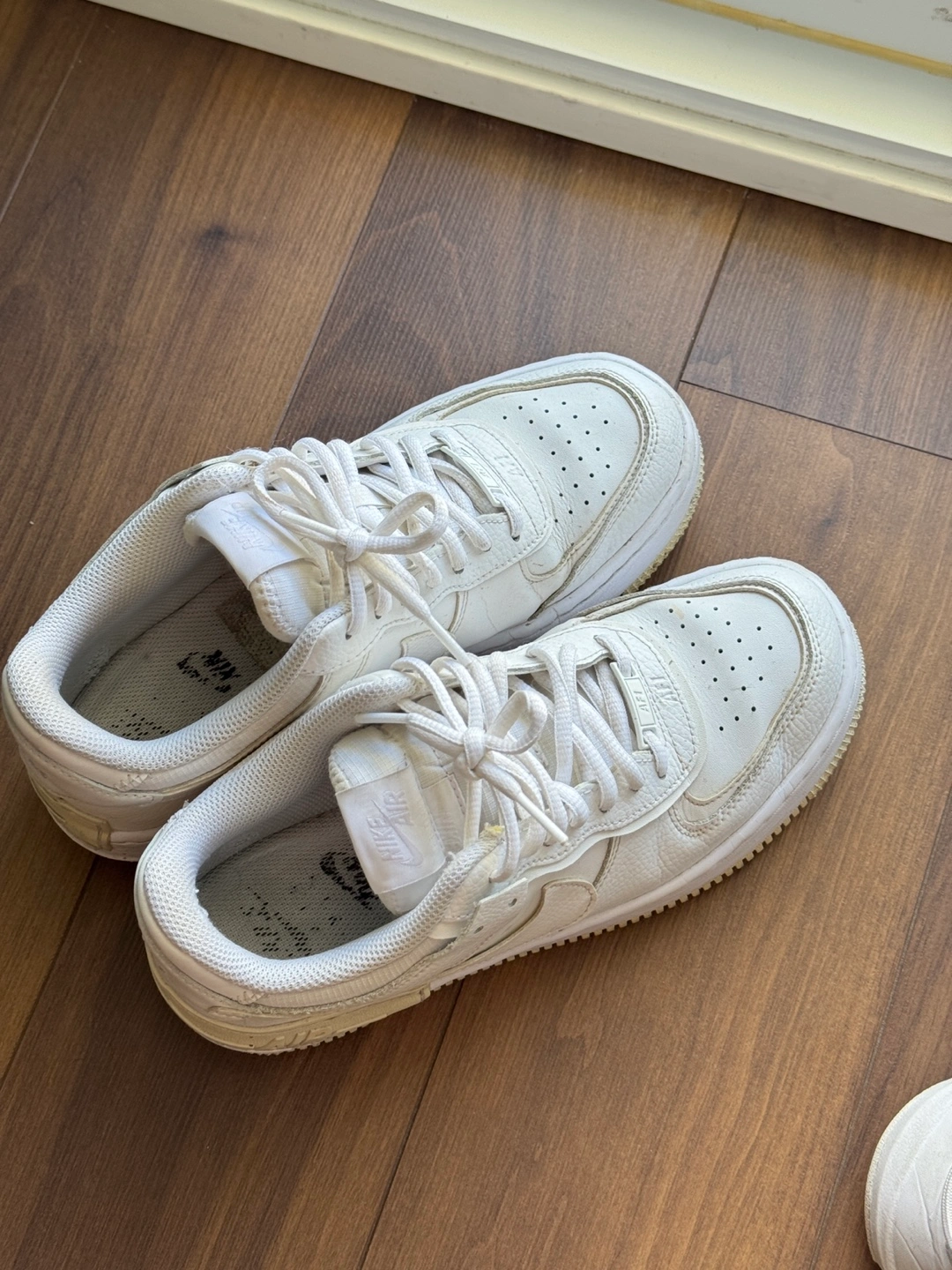 15Pre-owned Nike Air Force 1 Shadow sneakers. White leather upper. Size 7.5 US.