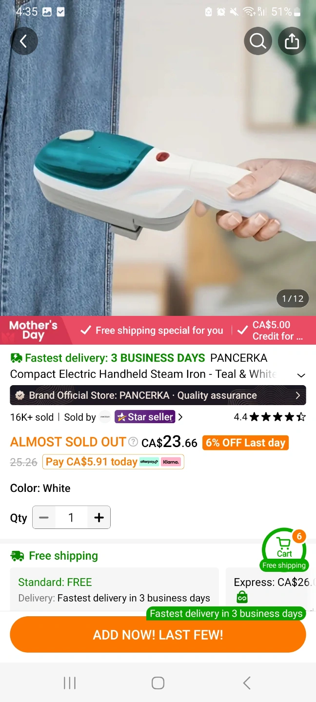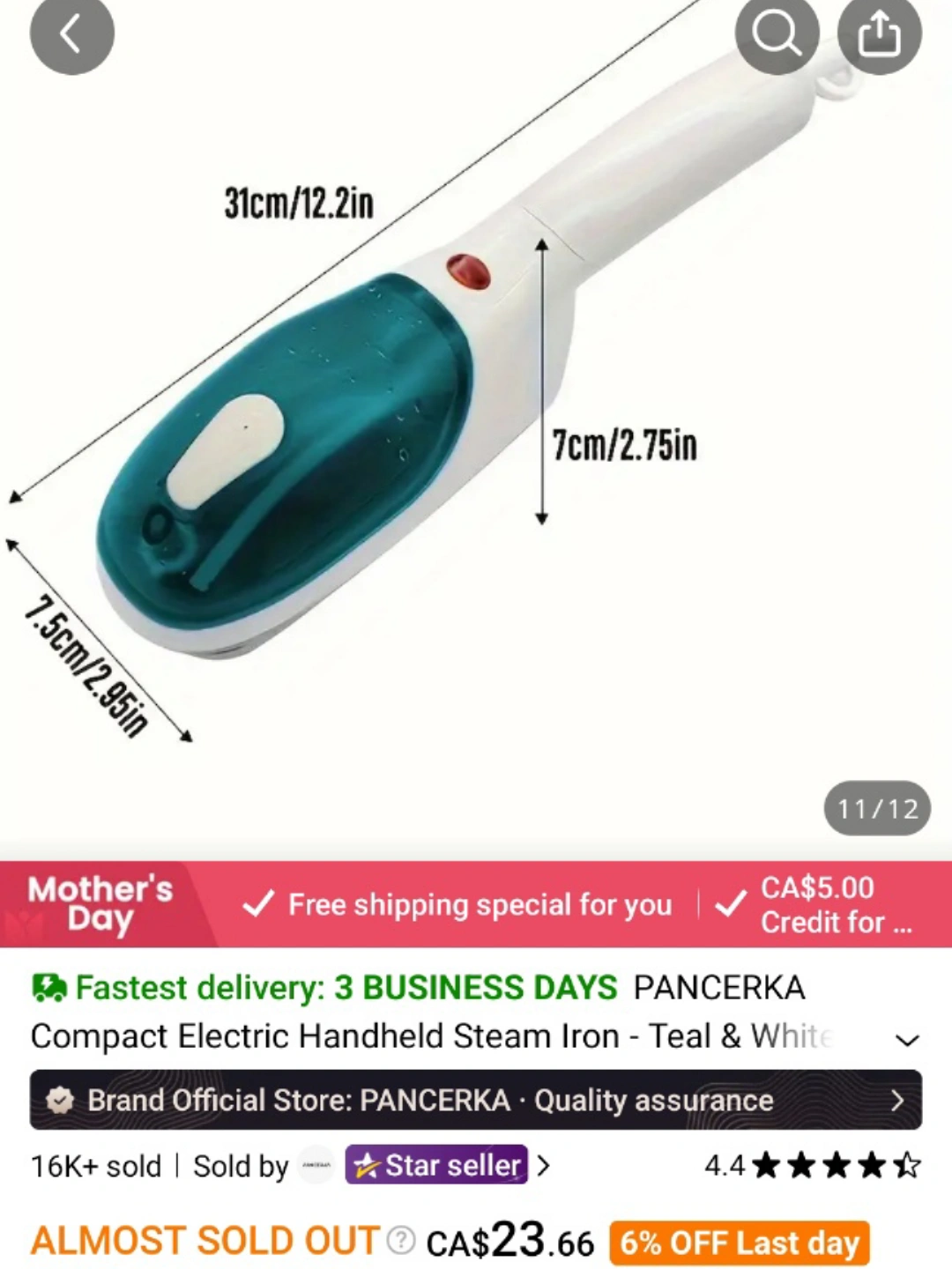 Portable steamer, easy to travel with. Great for clothes. Multiple uses. Compact and lightweight design. White and teal colour.