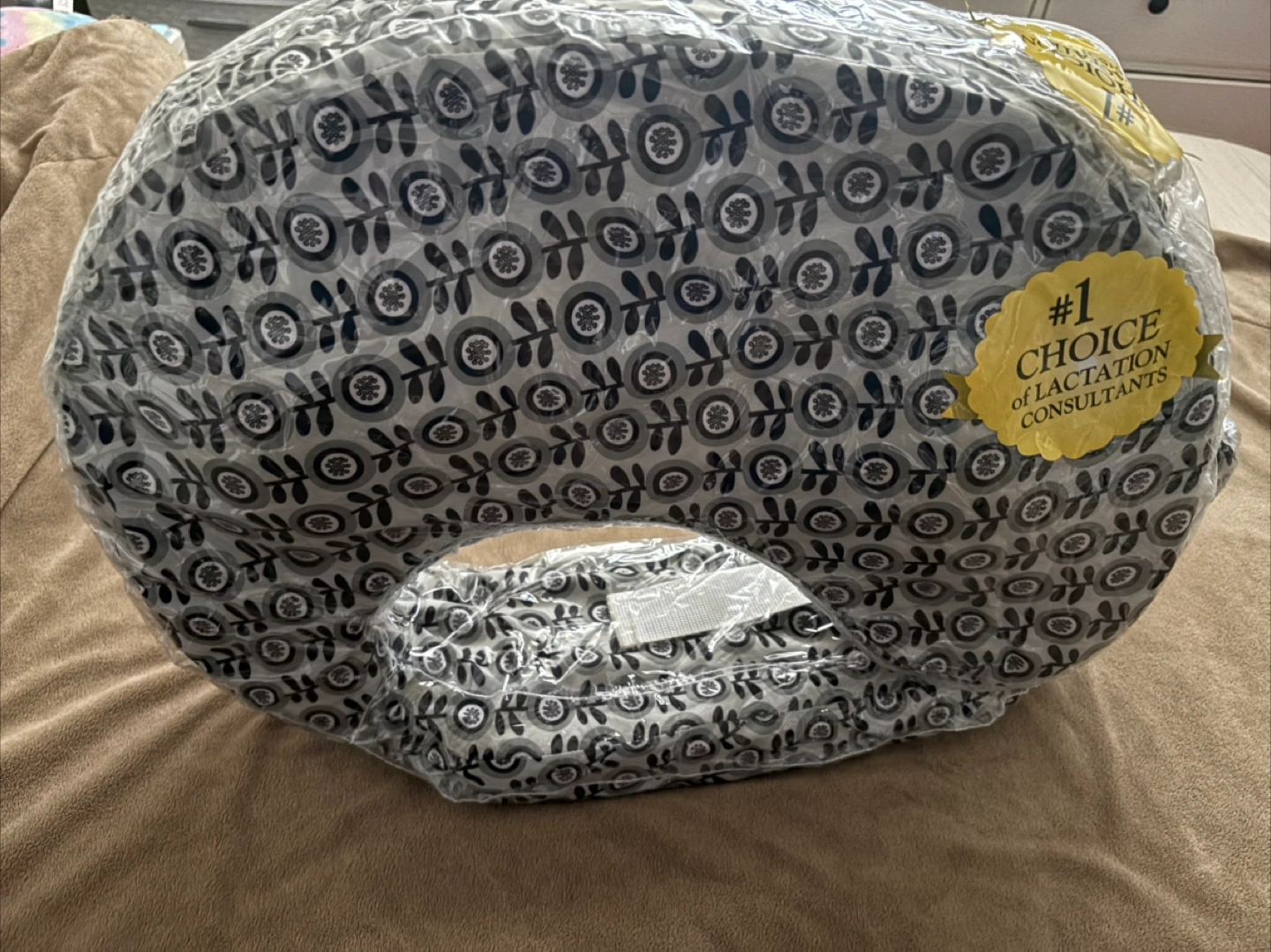 Grey and black floral print. Like new in plastic packaging. #1 Choice of Lactation Consultants.