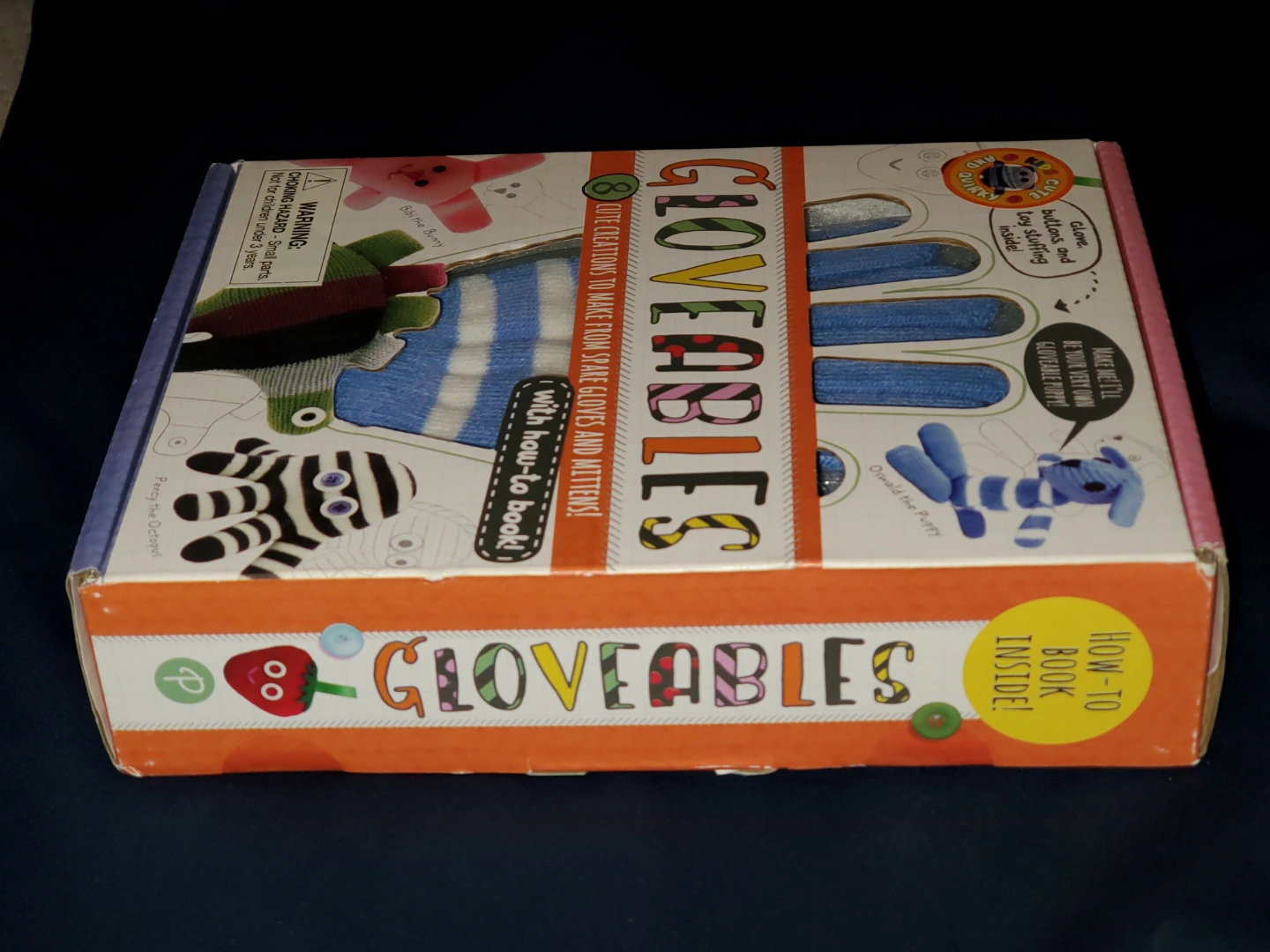 New and unopened Gloveables craft kit. Includes gloves, buttons, toy stuffing, and an instruction book. Eight cute creatures to make from spare gloves and mittens.