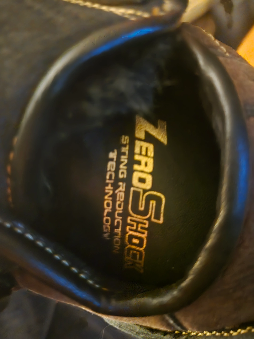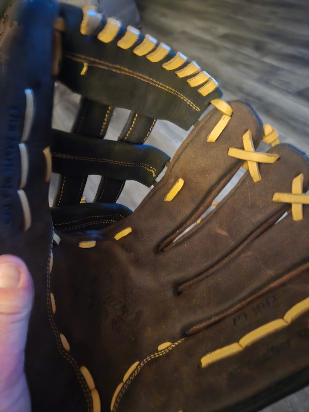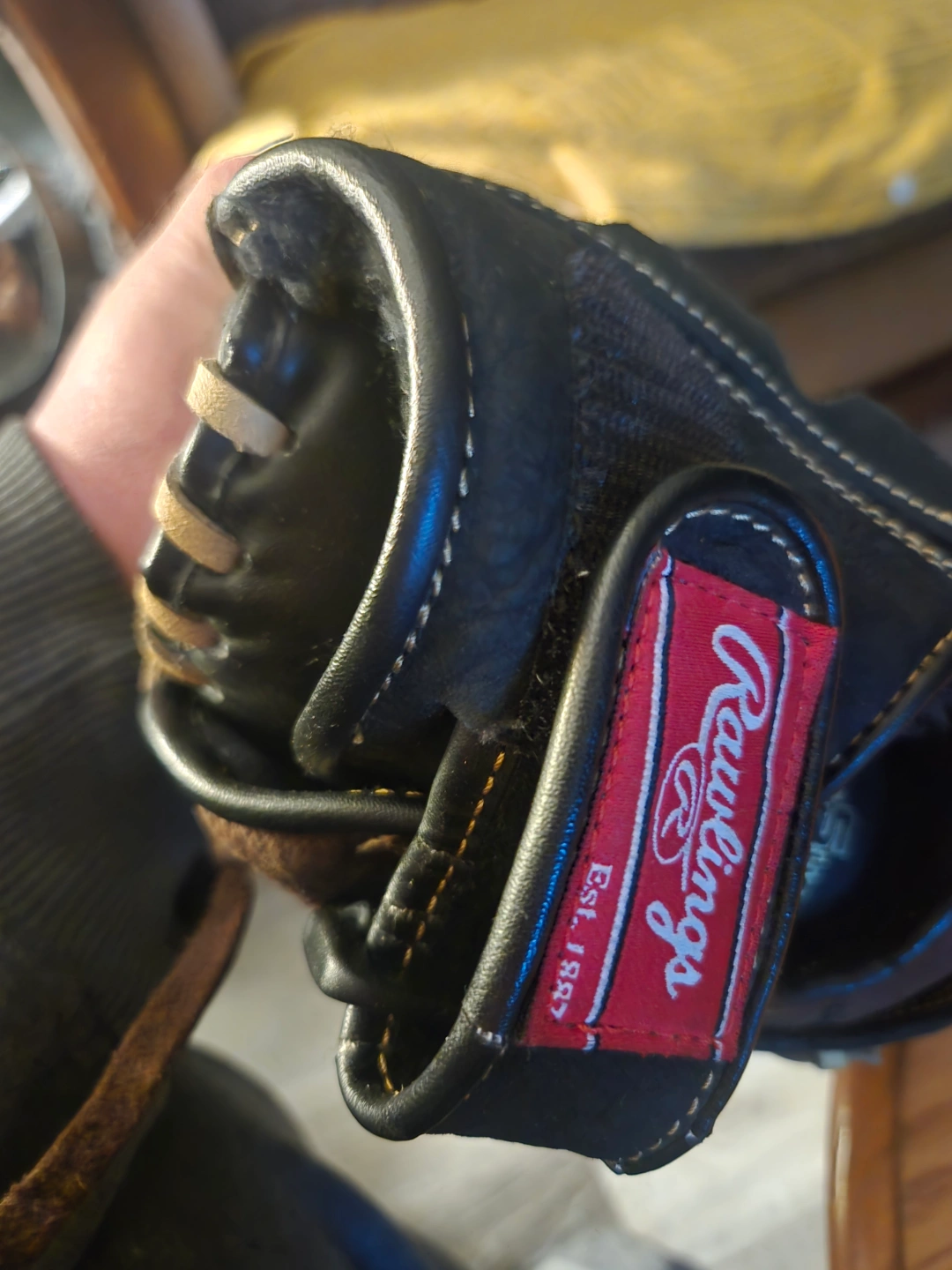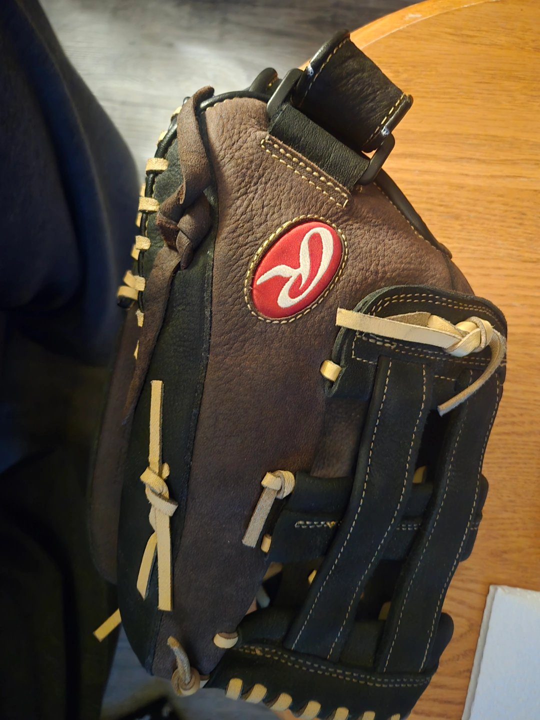 Used Rawlings baseball glove. 13-inch model. Features Zero Shock Sting Reduction Technology. Brown and black leather. Good condition.
