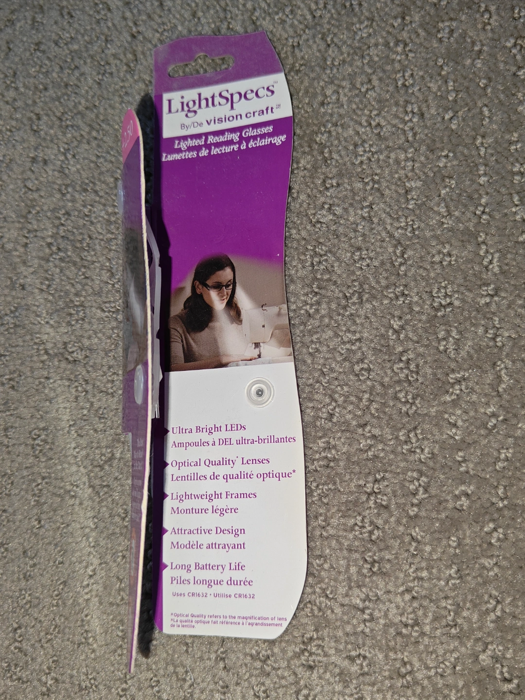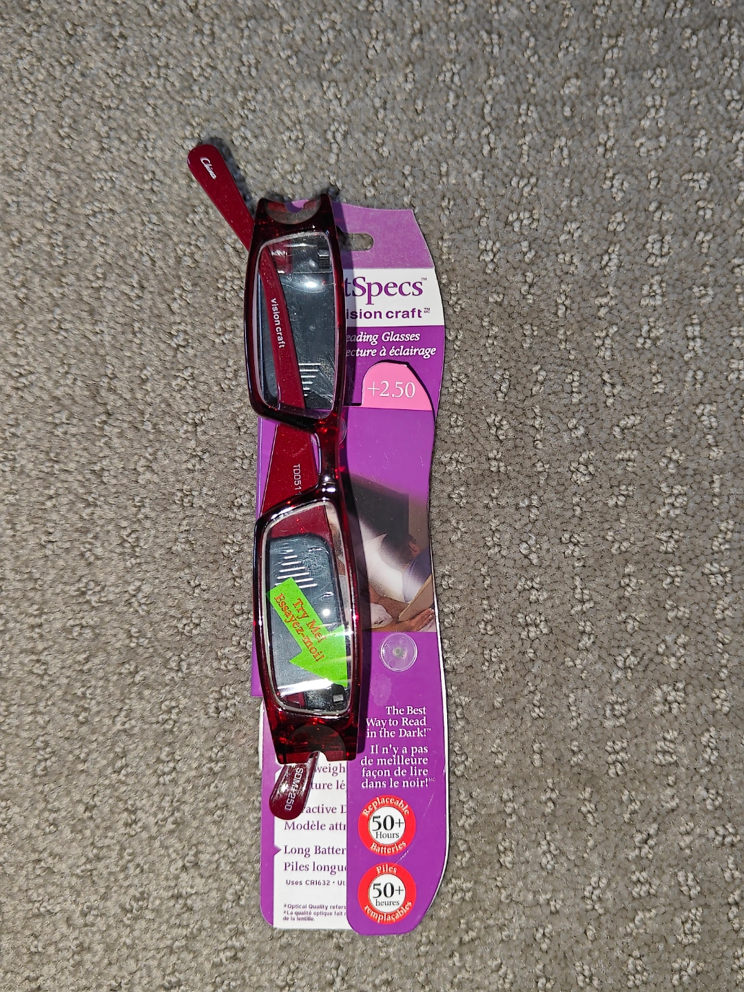 I am selling Reading Glasses / Eye Glasses with LED Lights - Vision Craft +2.50 in new condition. The lights on the glasses are in working condition. Lighted reading glasses. The best way to read in the dark. Replaceable 50+ hours batteries. Great for restaurants, crafts, and traveling.