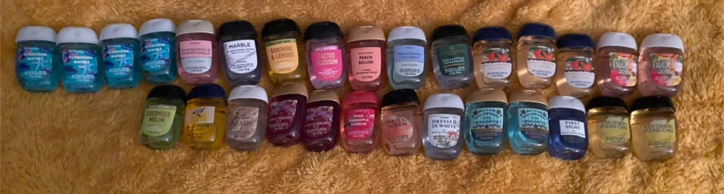 2 for $2.50 Collection of mini Bath & Body Works hand sanitizers. Various scents included. Perfect for travel or gifting.