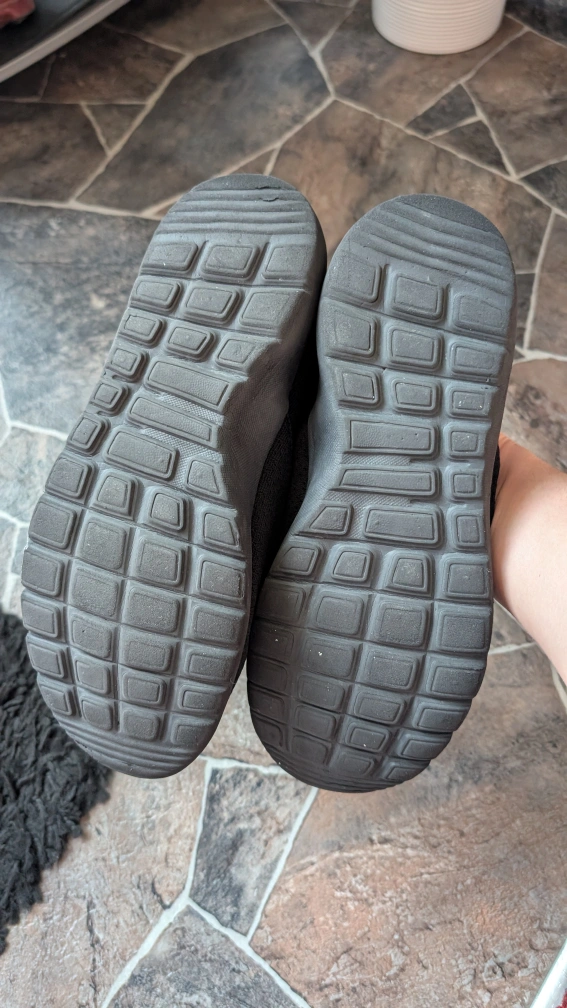 Pair of black shoes. Lightweight and comfortable. Good for everyday wear or light exercise. Minimal wear and tear.