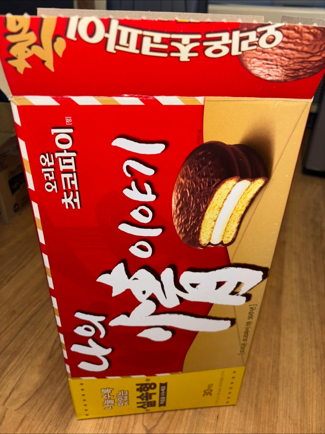 Box of 30 individually wrapped Lotte Choco Pies. Delicious Korean snack. Chocolate covered cake layers with marshmallow filling.