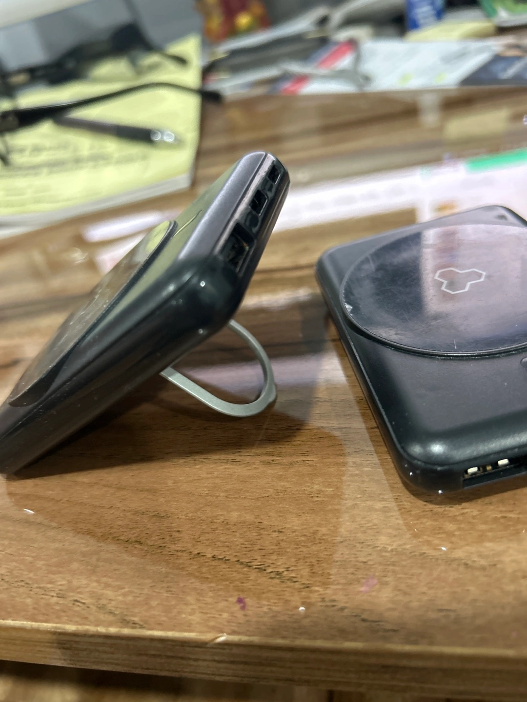Two BluHive portable chargers. One features a built-in phone ring holder. Both have multiple USB ports. Good for travel and wireless.