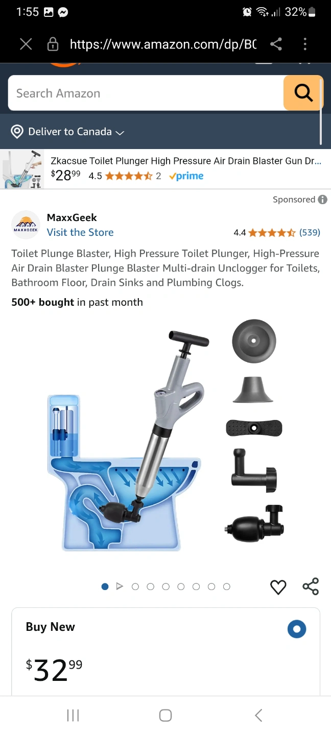 New drain blaster, high-pressure air plunger. Multi-drain unclogger for toilets, bathroom floor, drain sinks and plumbing clogs. Includes various attachments. Great for clearing clogs.