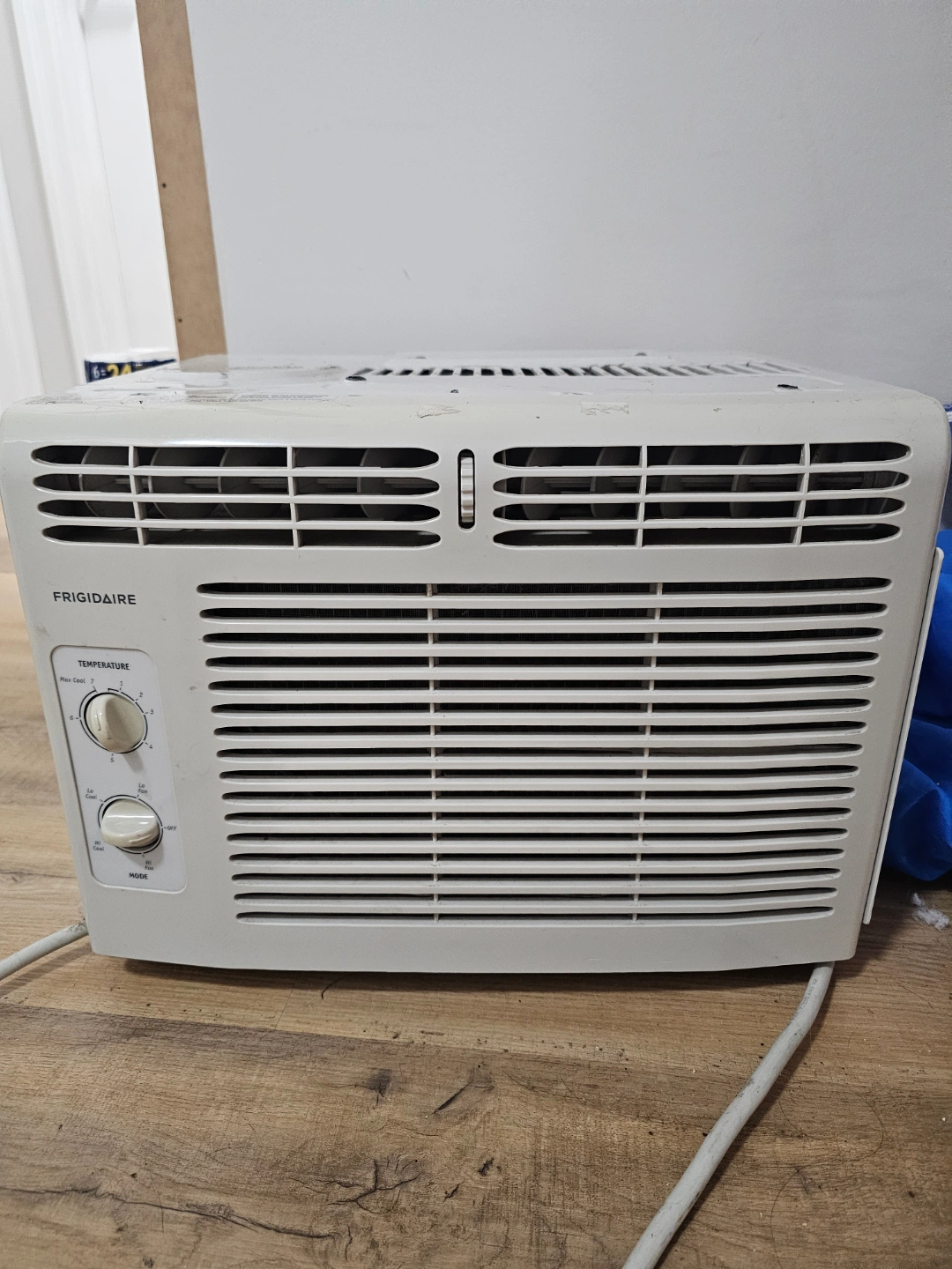 Used Frigidaire window air conditioner. Cooling and fan functions. Simple temperature controls. Ready for summer. Needs the according at the side. Can be bought on Amazon $19. Works well.