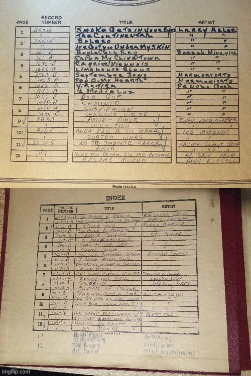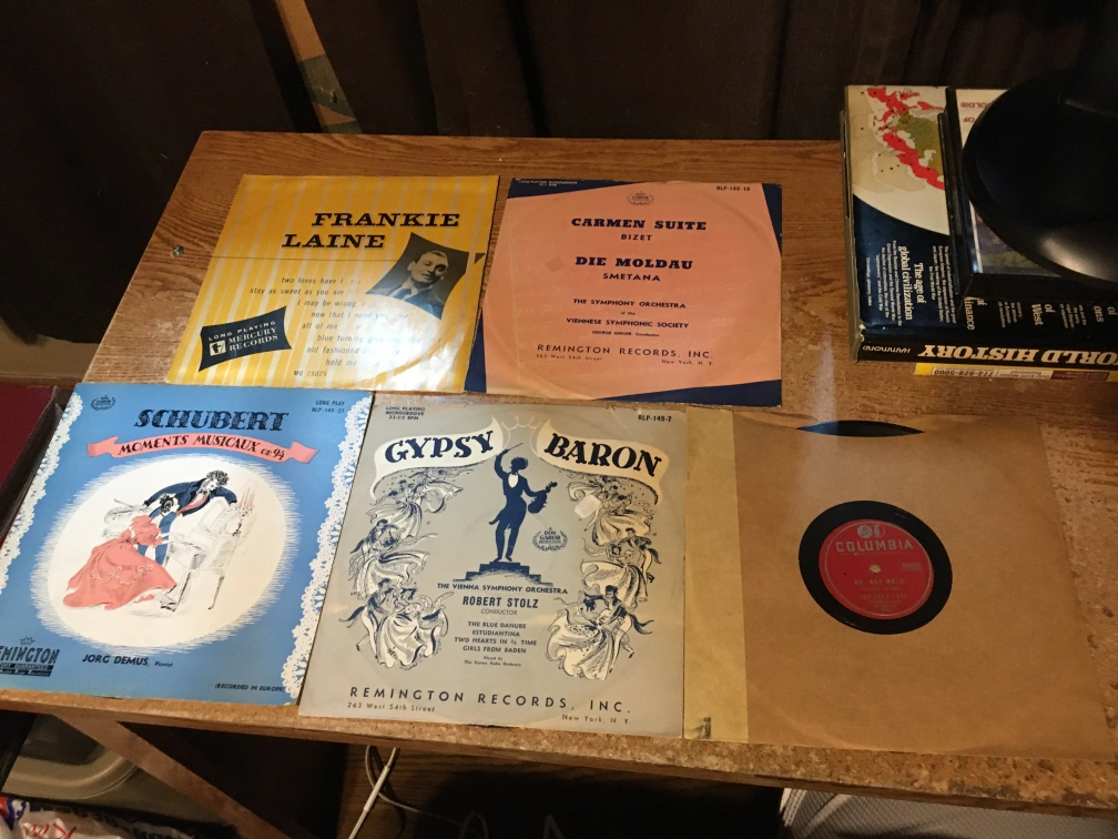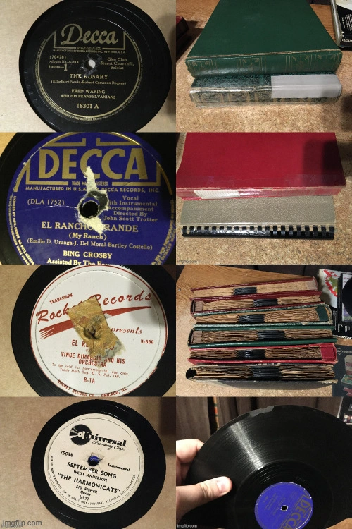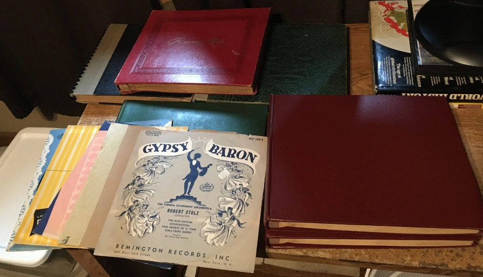 Collection of vintage 78 RPM record albumsand lps. Includes several albums with handwritten indexes. Records from various artists and labels. Albums show some wear. nothing has been tested as is records are mostly in good condition a few of them have wear marks in the middle. four of the storage books have tape on the spine a couple of the covers were taped back on. last picture for all details. They weigh like 35 lb. pick up at house