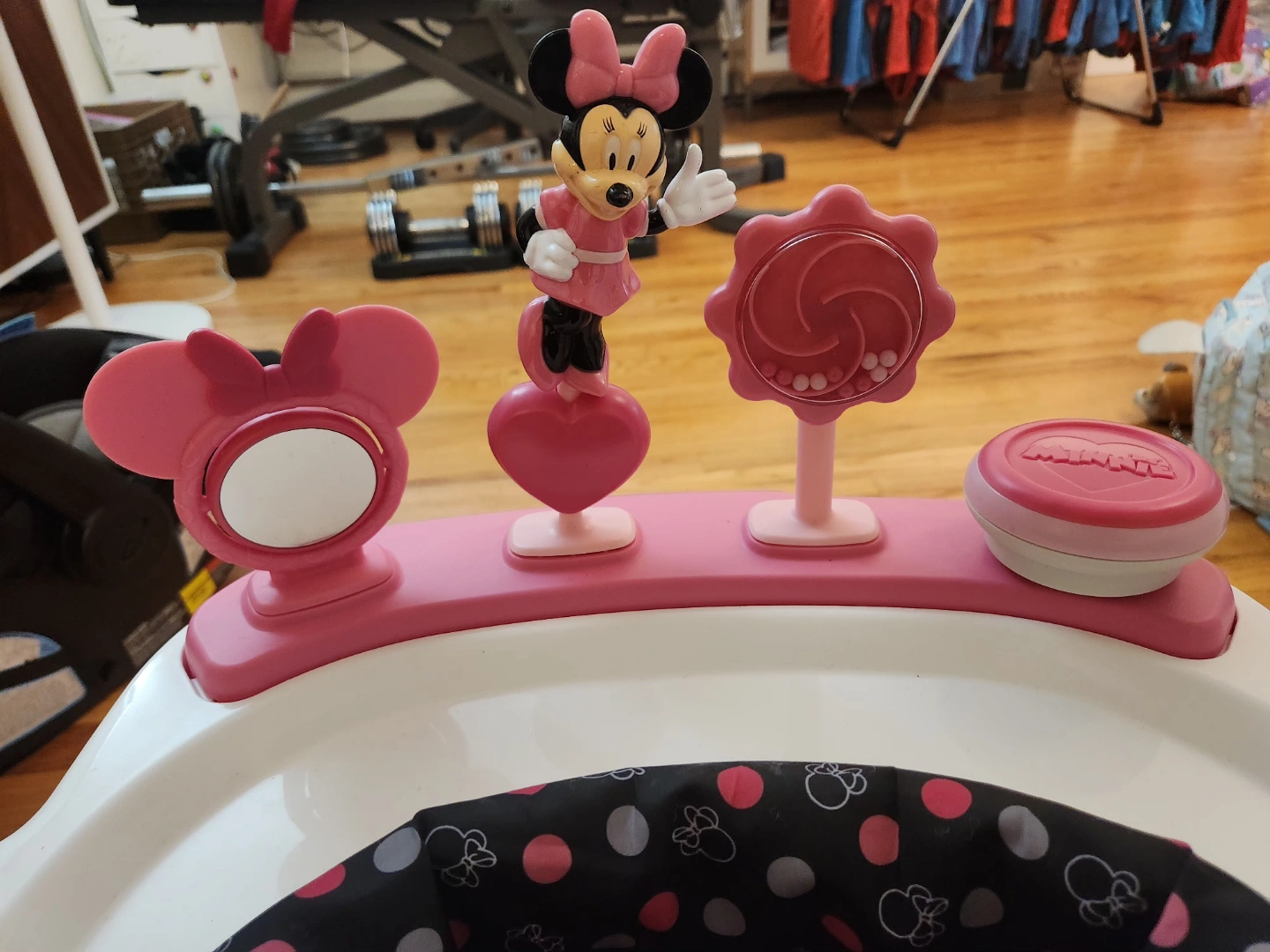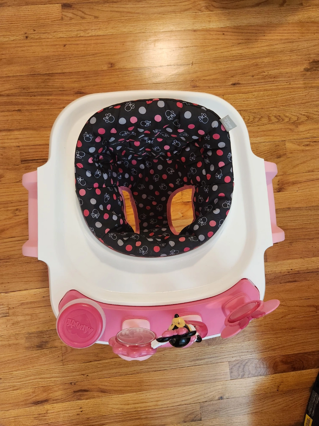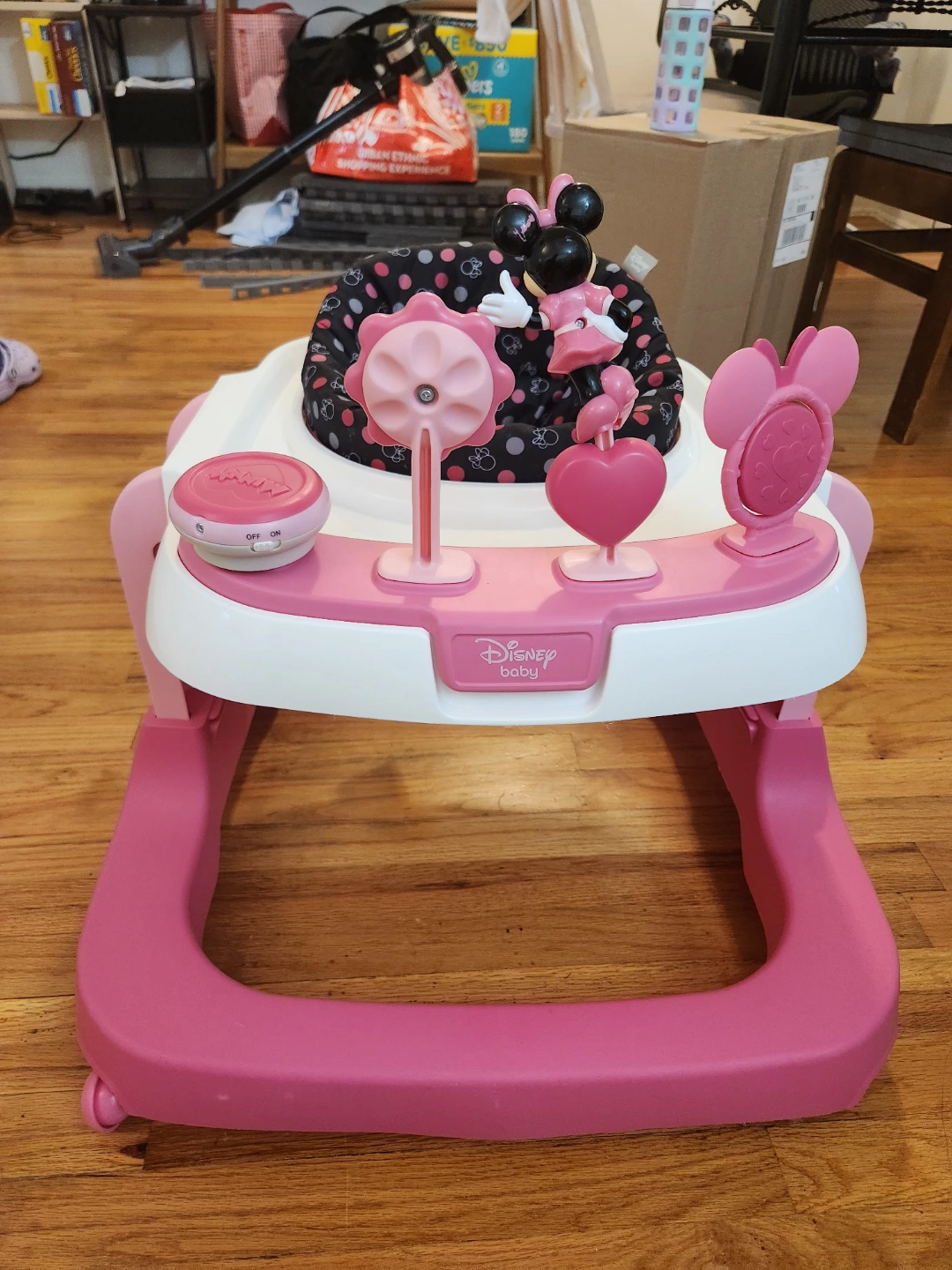 150Adorable Minnie Mouse-themed baby walker. Features include a padded seat, activity toys, and a playful design. Great for encouraging your little one's first steps!