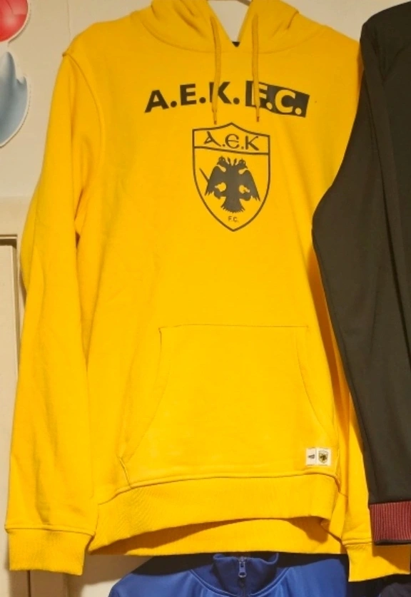 Men's yellow hooded sweatshirt. Features A.E.K. Athens FC logo in size L and brand new condition manufactured by Capelli in 19/20 season One of the biggest and loudest fans in Greece, it's AEK ATHENS. One of the most successful teams in the Greek super league, they compete for the title each season against other Greek giants like olympiacos, Panathinaikos F.C.and PAOK All jerseys are authentic and not replicas, Always open for offers *CASH AND PICKUP ONLY* serious inquiries only Be sure to check out our other listing for more items