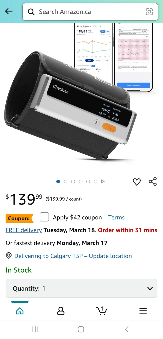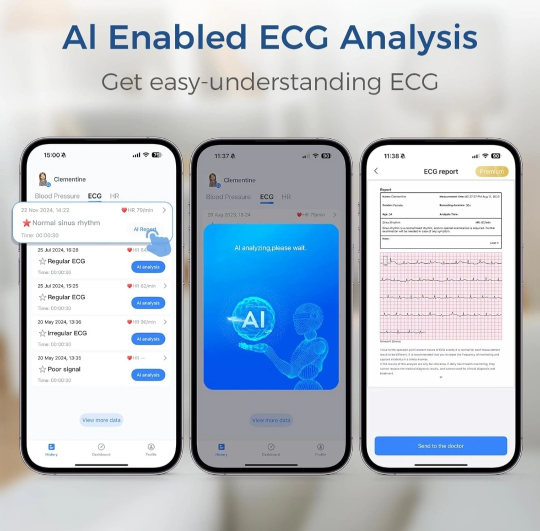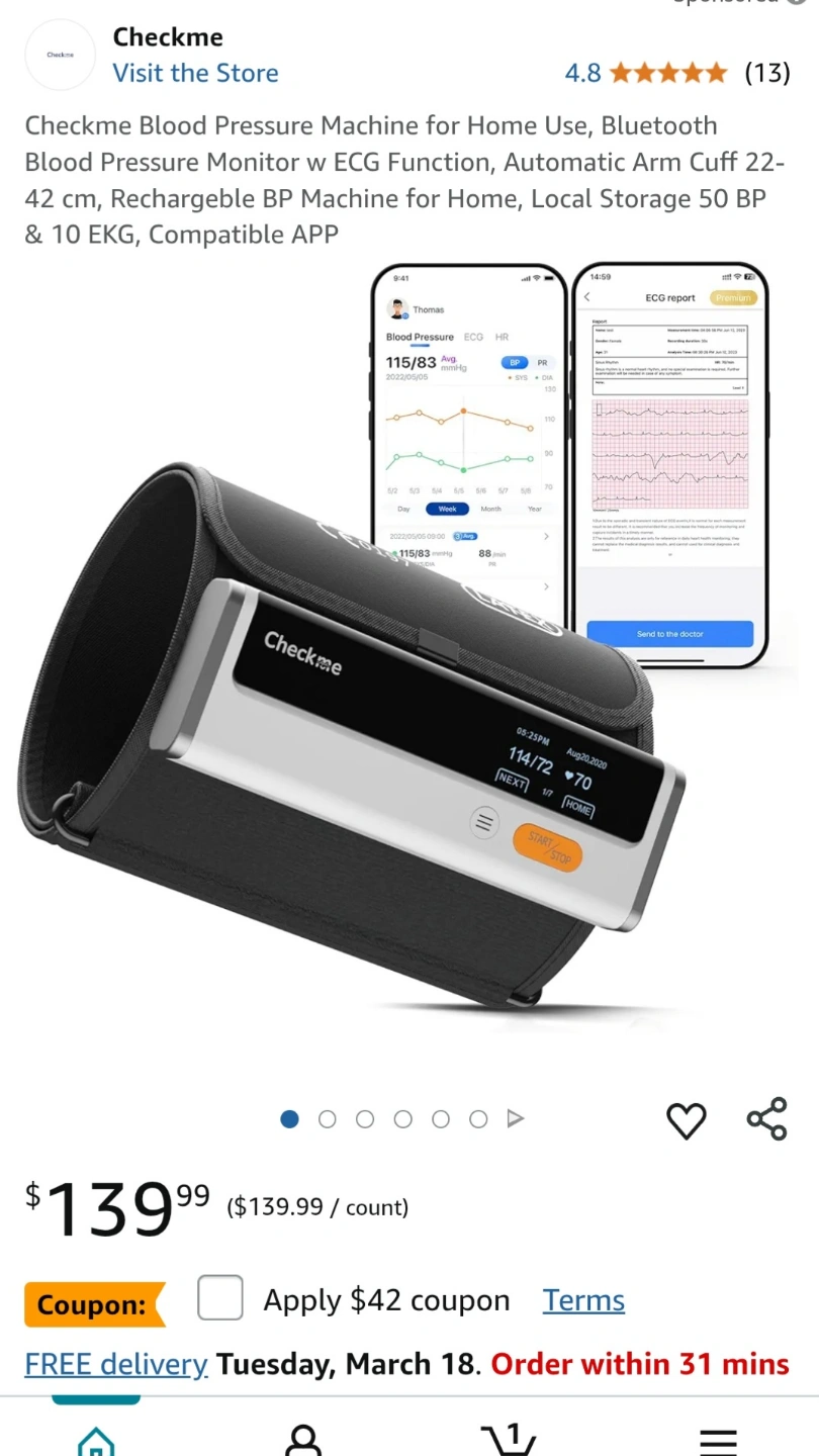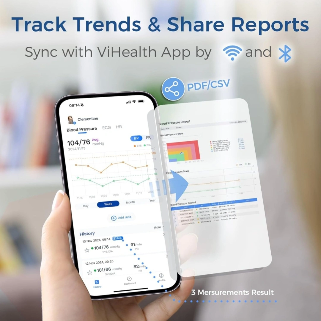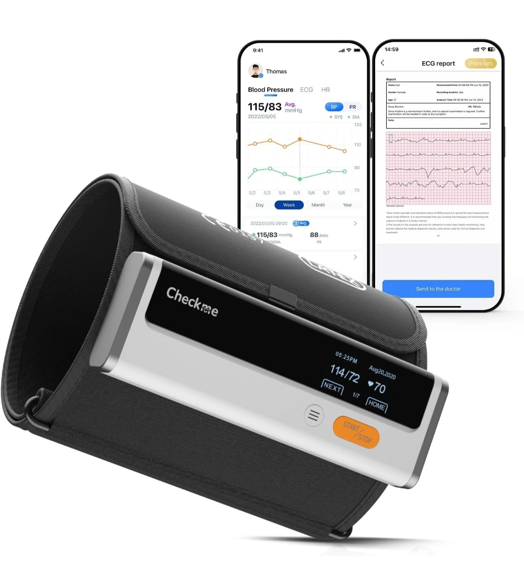 Checkme Blood Pressure Machine for Home Use, Bluetooth Blood Pressure Monitor w ECG Function, Automatic Arm Cuff 22- 42 cm, Rechargeble BP Machine for Home, Local Storage 50 BP & 10 EKG, Compatible APP New never opened from box
