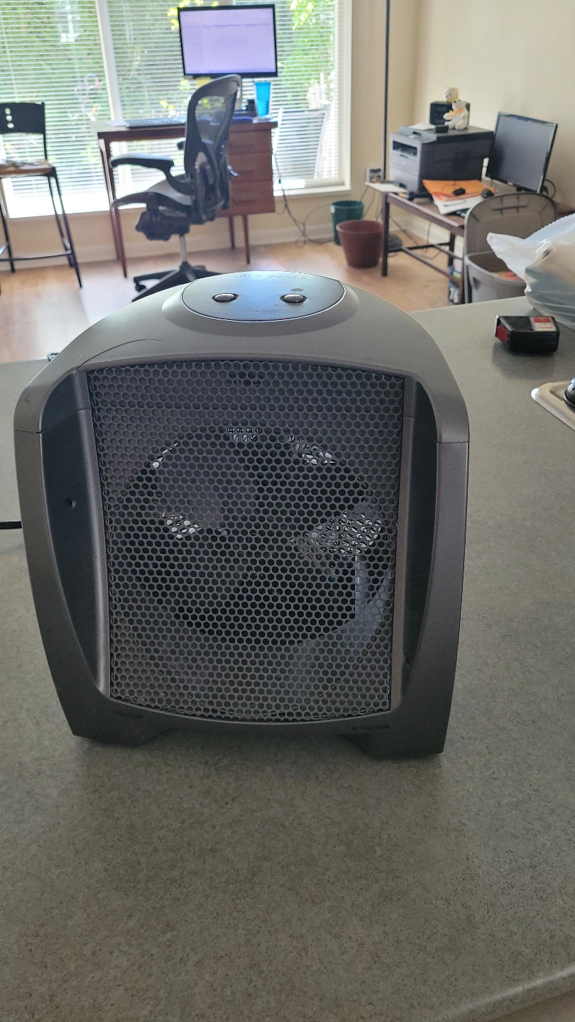 Portable ceramic heater. Great for small spaces. Features power and auto-off functions. Excellent condition. works great