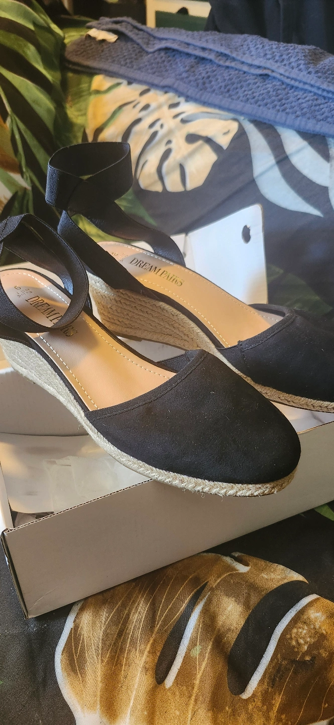 Buy & SellBlack Espadrille Wedge Sandals - Size 8Black Espadrille Wedge Sandals - Size 8$9Wedge espadrille sandals. Black suede-like material. Ankle tie closure. Size 6. New in box.ConditionNewSize6WHERE TO MEETtraffic circleView MapSELLERverifiedlerhondaNormanhurst650 reviews0 chats·0 favorites·35 views