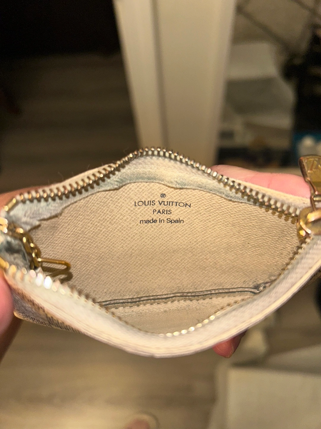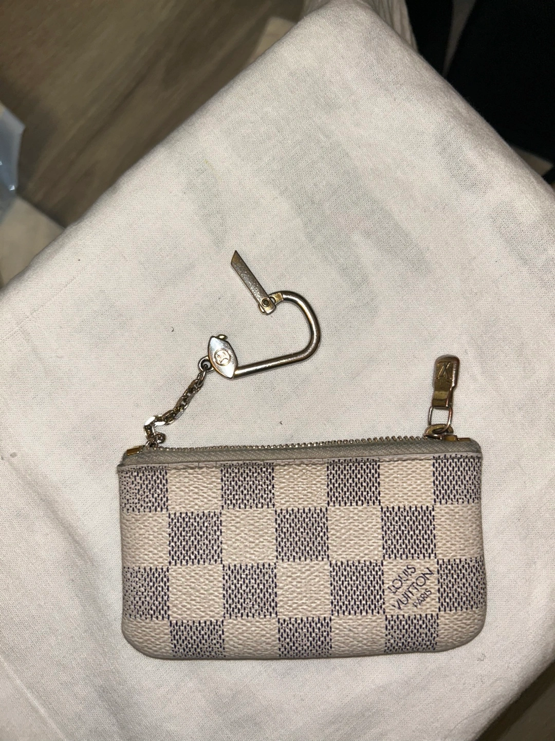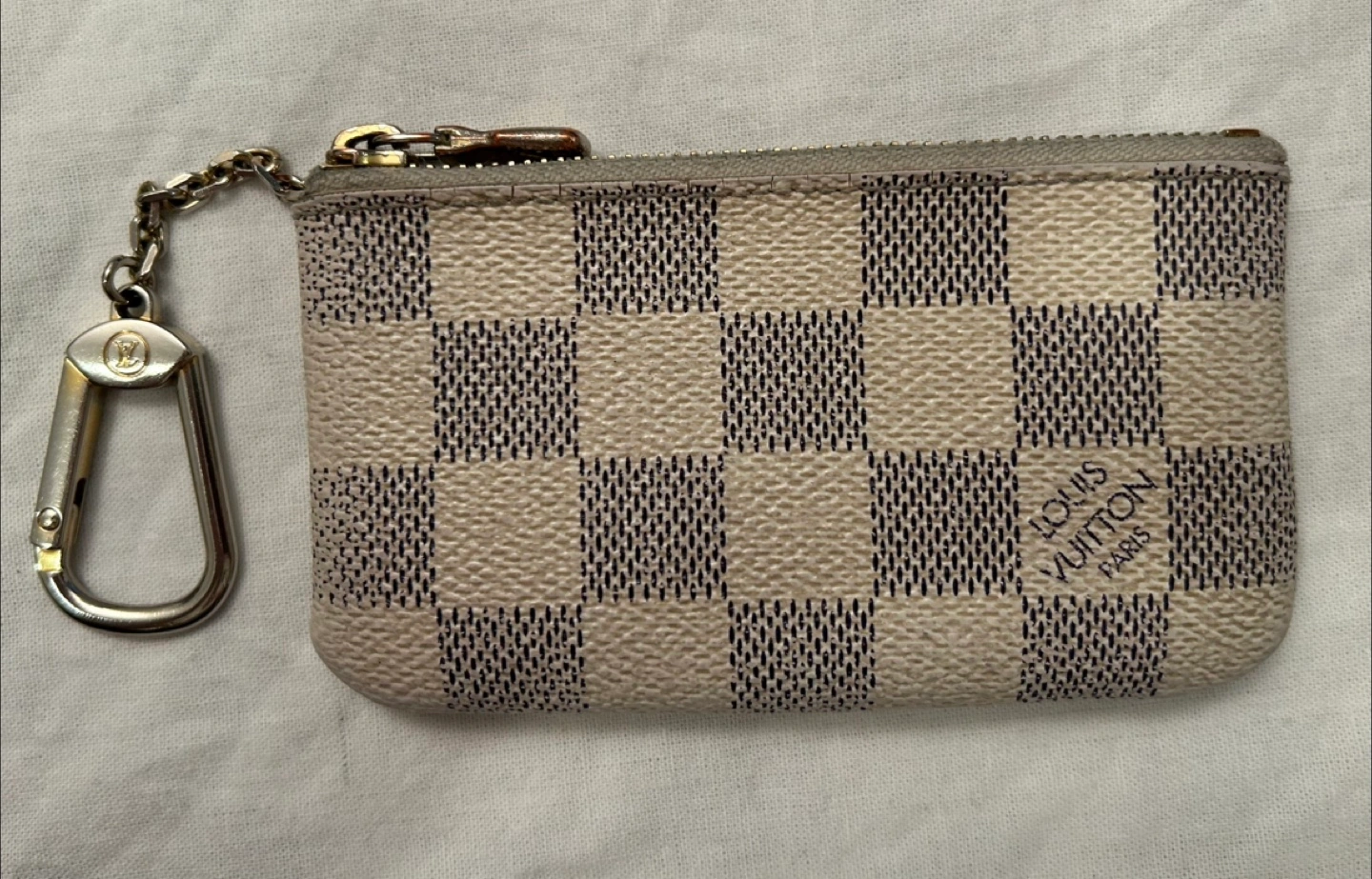 Adorable Louis Vuitton coin purse. Features a Damier Azur canvas exterior and a silver-toned keychain. Zipper closure. Compact and stylish. *Authentic* USED and in good condition
