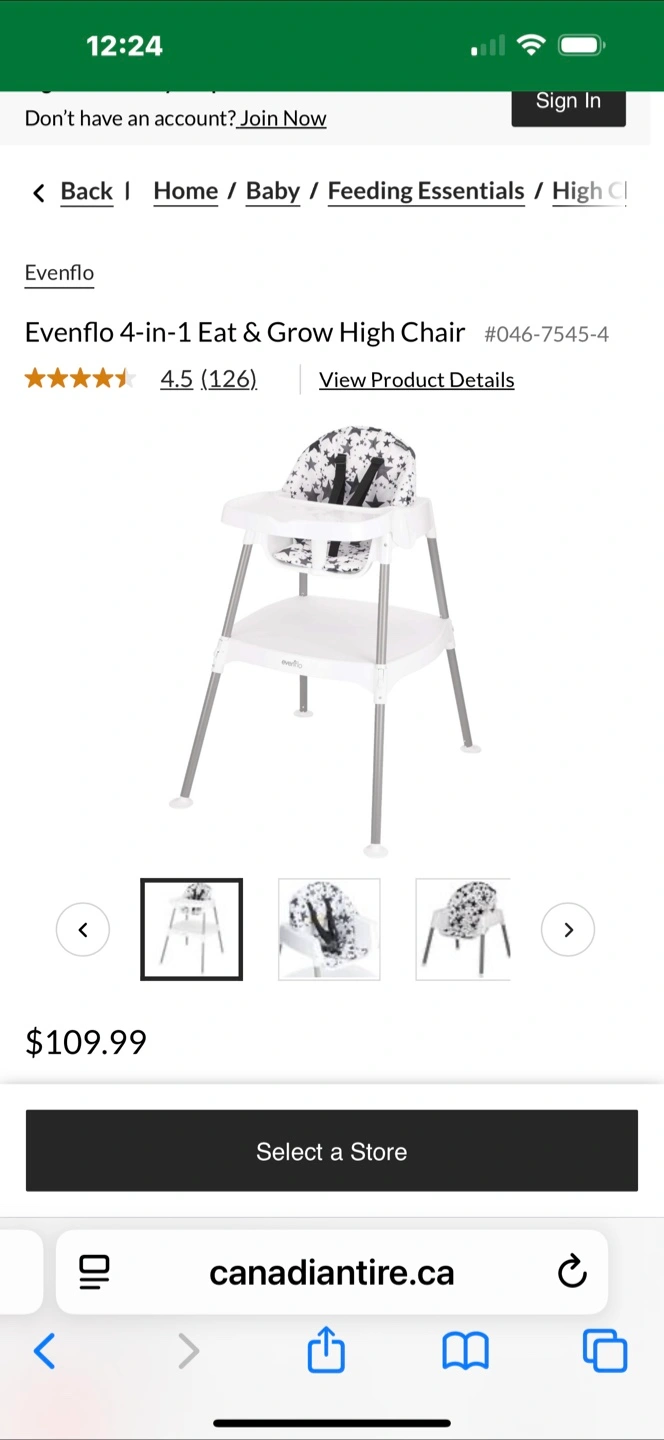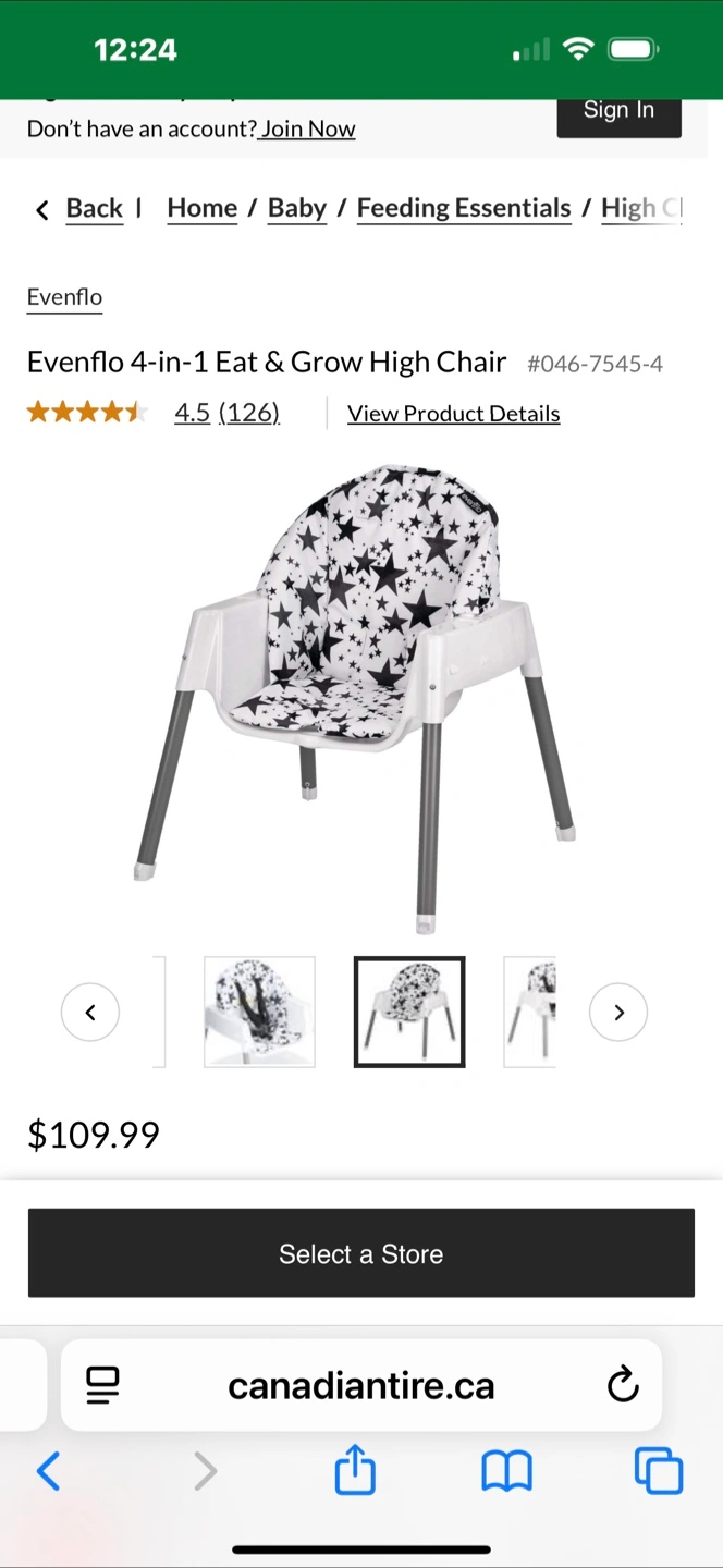 Excellent condition Evenflo high chair. Four-in-one design. Grey legs, white plastic seat. Star pattern seat cover. Easy to clean.like new only used handful times when grandson came to visit