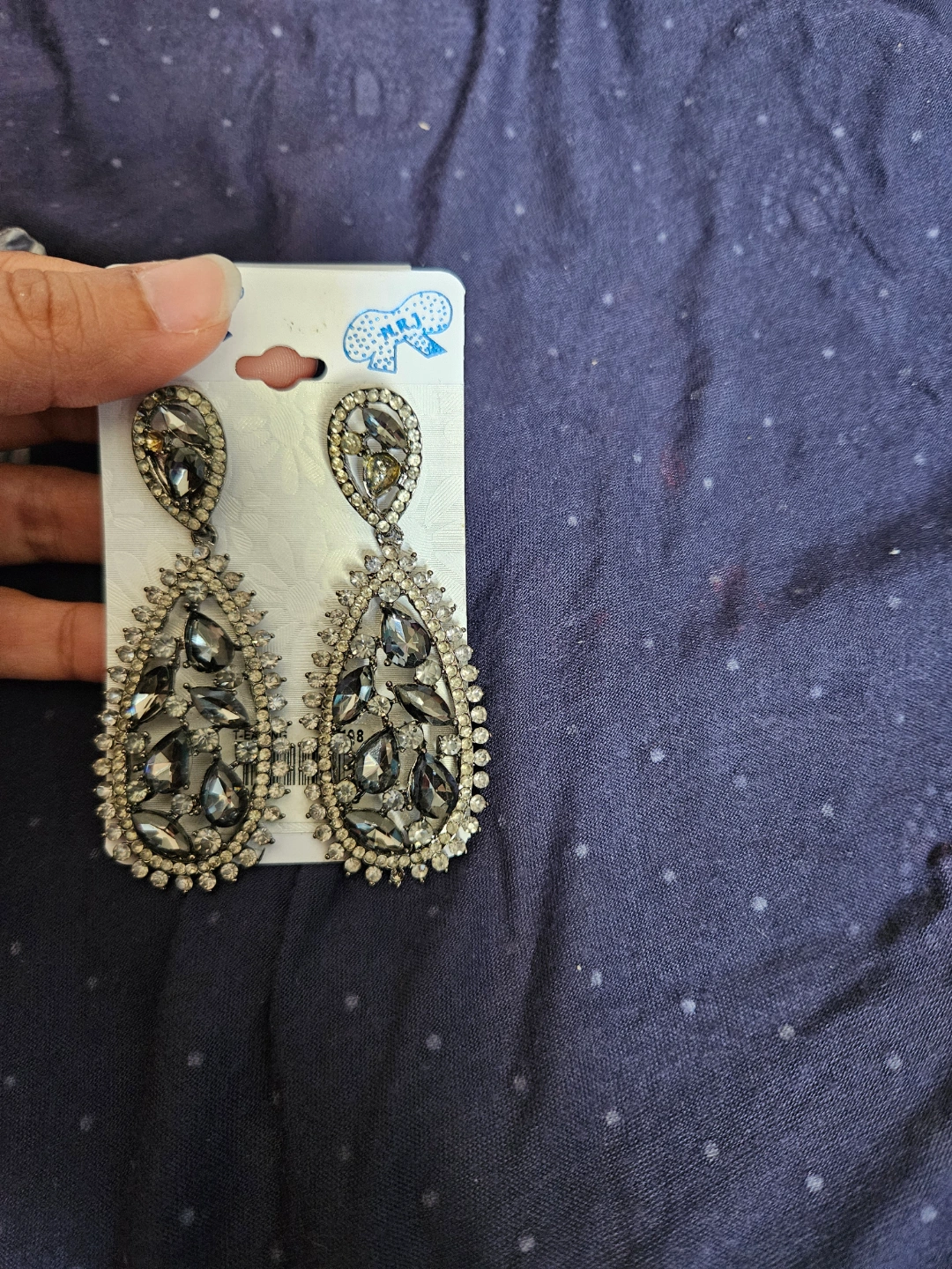 92Stunning gray rhinestone earrings. Teardrop design. Perfect for a night out.