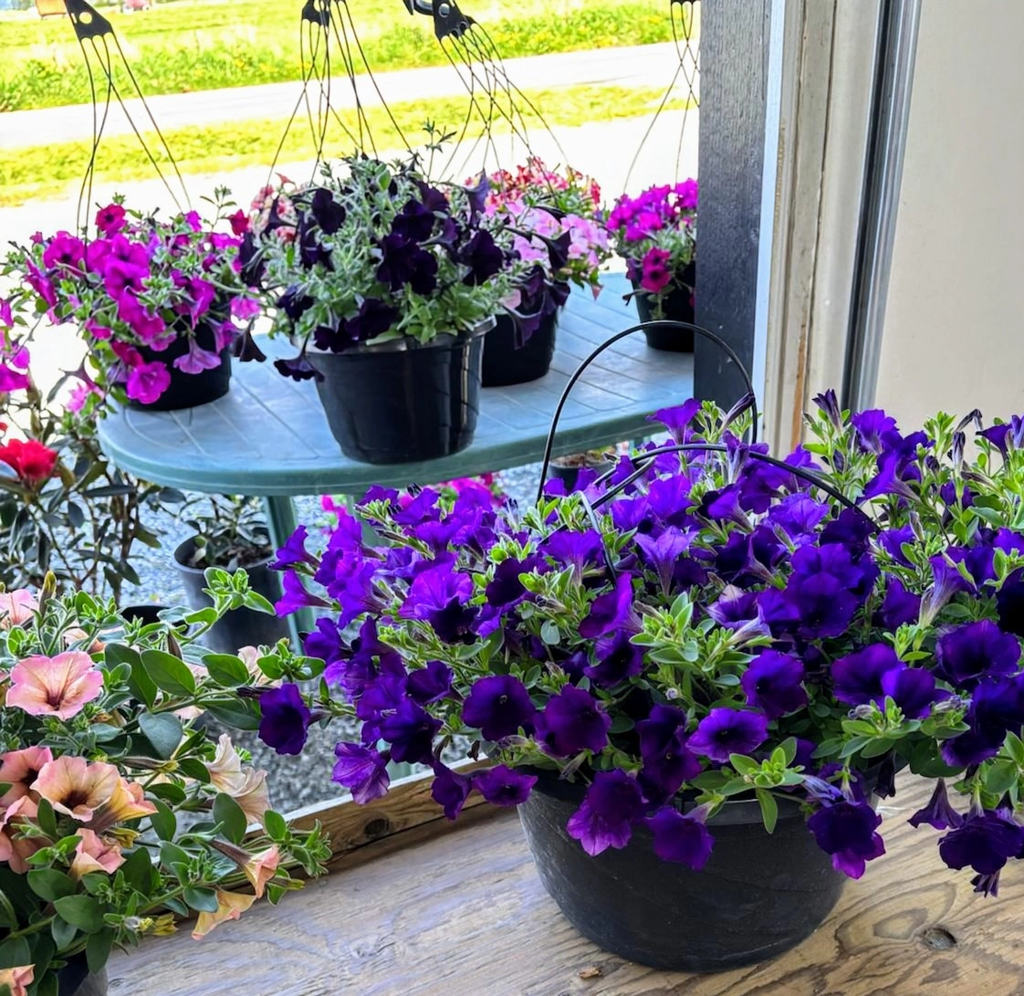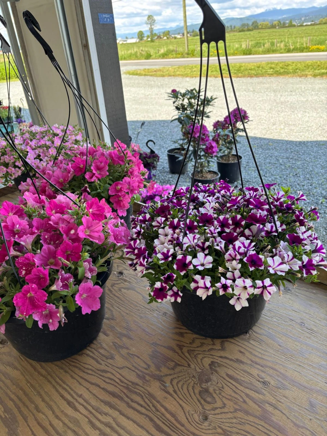 Beautiful petunias in hanging baskets. Various colours available. Perfect for adding colour to your garden or patio or for Mother's day! Deal is 2 for $45!