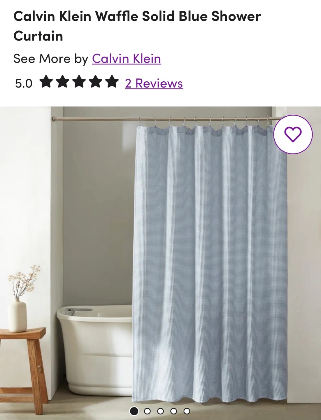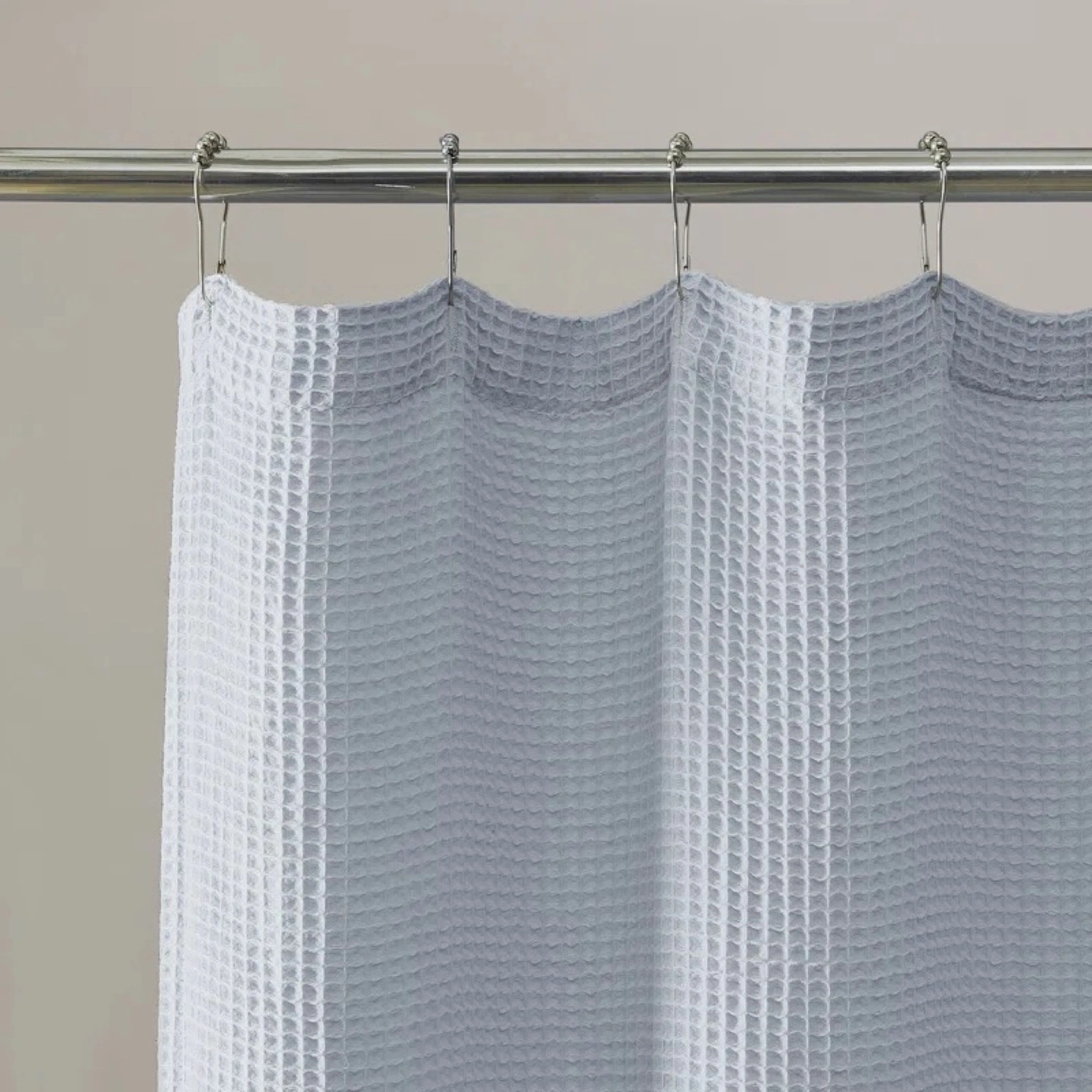 Calvin Klein waffle-textured shower curtain. Light blue colour. Adds a touch of elegance to your bathroom. Gently used, excellent condition.