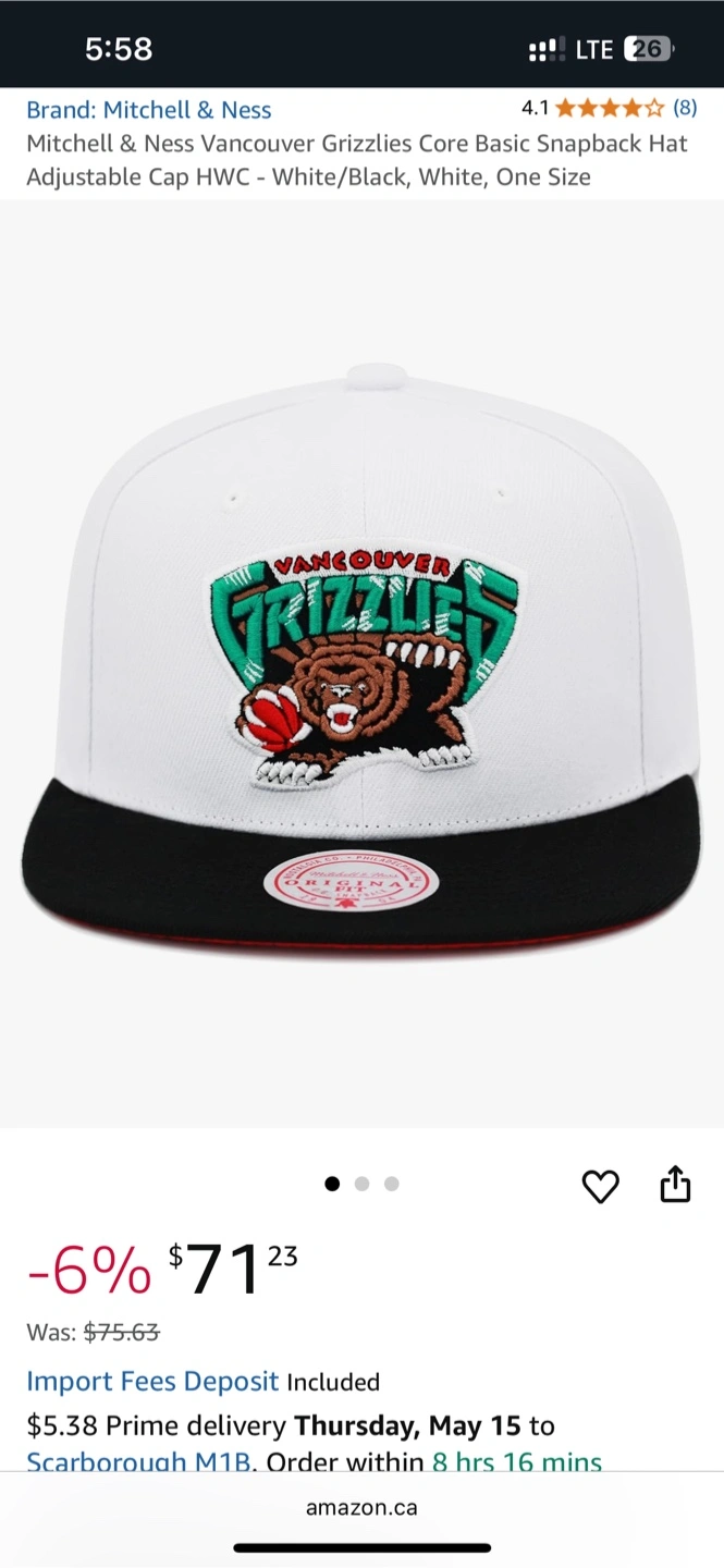 Great condition of the vintage Mitchell & Ness Vancouver Grizzlies Hat.
