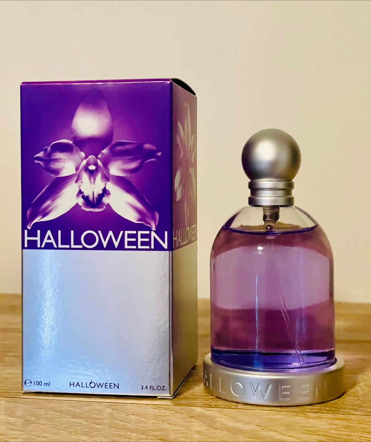 887Women's perfume. 100ml bottle. Purple liquid. Silver cap. Orchid on packaging. Eau de toilette.